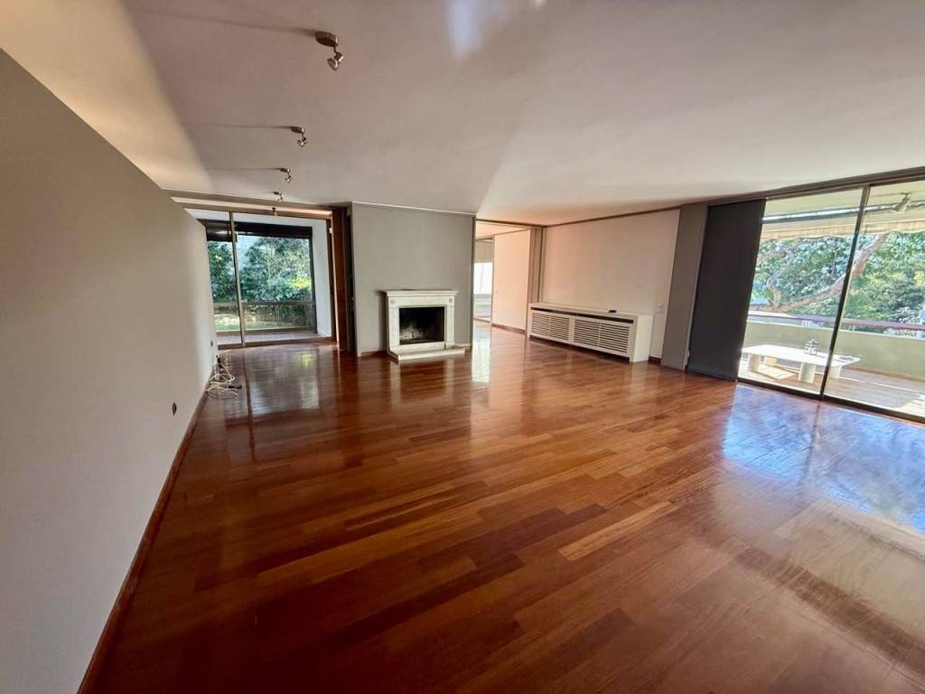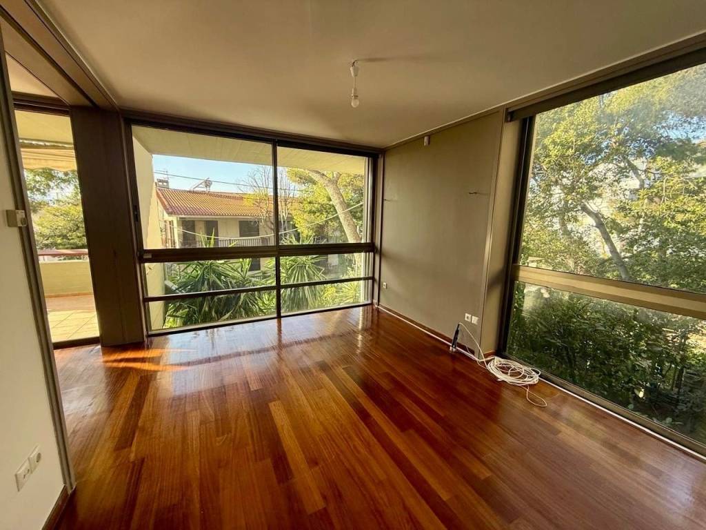 Εξαιρετικό διαμέρισμα 209 τ.μ. στον 1ο όροφο διπλοκατοικίας κατασκευής 1981, ανακαινισμένο το 2020. Το ακίνητο ξεχωρίζει για τους άνετους, φωτεινούς χώρους του, και την προνομιακή, ήσυχη τοποθεσία μέσα στο πράσινο. Αποτελείται από ένα πολύ ευρύχωρο σαλόνι με τζάκι, ξεχωριστή τραπεζαρία, χώρο γραφείου, ανεξάρτητη κουζίνα, δύο υπνοδωμάτια και δύο μπάνια. Διαθέτει αυτόνομη θέρμανση με ρεύμα, συναγερμό, κάμερες, μεγάλα ανοίγματα που προσφέρουν άπλετο φυσικό φως σε όλους τους χώρους, καθώς και ένα πολύ μεγάλο μπαλκόνι, ιδανικό για στιγμές χαλάρωσης.