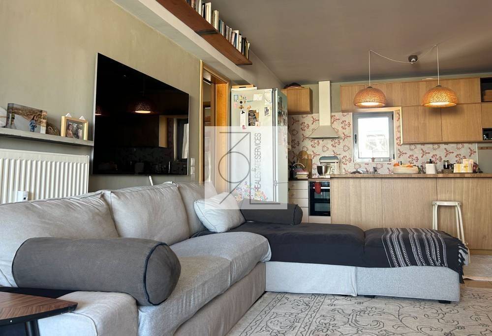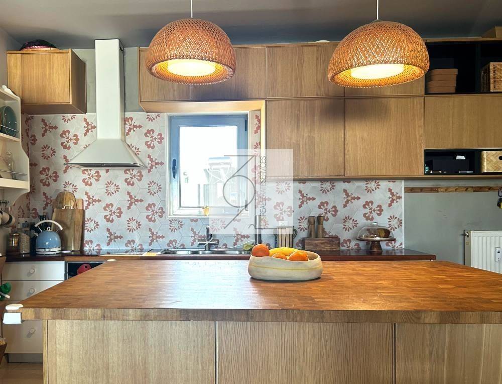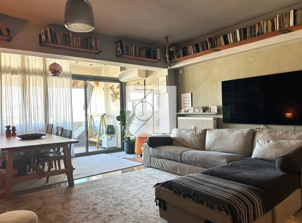 Το διαμέρισμα προσφέρει 90 τ.μ. εσωτερικών χώρων και αποτελείτε από 2 υπνοδωμάτια και 1 μπάνιο, ενιαία κουζίνα με καθιστικό, καθώς και ευρύχωρο στεγασμένο μπαλκόνι 15 τ.μ. με ανοιχτή θέα στην πόλη. Θέα Ακρόπολη υπάρχει από την κουζίνα και το ένα υπνοδωμάτιο.