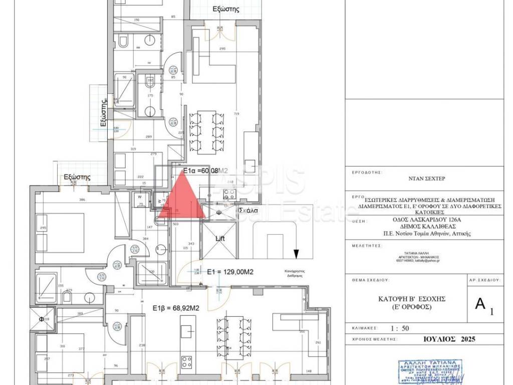 Καλλιθέα, πλήρως ανακαινισμένο διαμέρισμα 129τ.μ. (αποπεράτωση 12/2025) με δυνατότητα διαμόρφωσης σε 2 διαμερίσματα 69τμ & 60τμ. Αποτελείται συνολικά από 4 υπνοδωμάτια, δύο ενιαίους χώρους σαλόνι/κουζίνα και τρία μπάνια. Έχει ανακατασκευαστεί το 2025 και διαθέτει παντού aicrconditions, διπλά κουφώματα Αλουμινίου Θερμοδιακοπτόμενα με ηλεκτρικά ρολά και σίτες, ξύλινα παρκέ, καινούργια Υδραυλικά και Ηλεκτρολογικά, μοντέρνες κουζίνες με μηχανισμούς, ευρύχωρες ντουλάπες, Πόρτα Ασφαλείας και βεράντες με ωραία θέα και τέντες. Απέχει μόλις 200 μέτρα από τον ΗΣΑΠ Καλλιθέας και την πλατεία Δαβάκη και βρίσκεται κοντά σε αγορά και σχολεία.