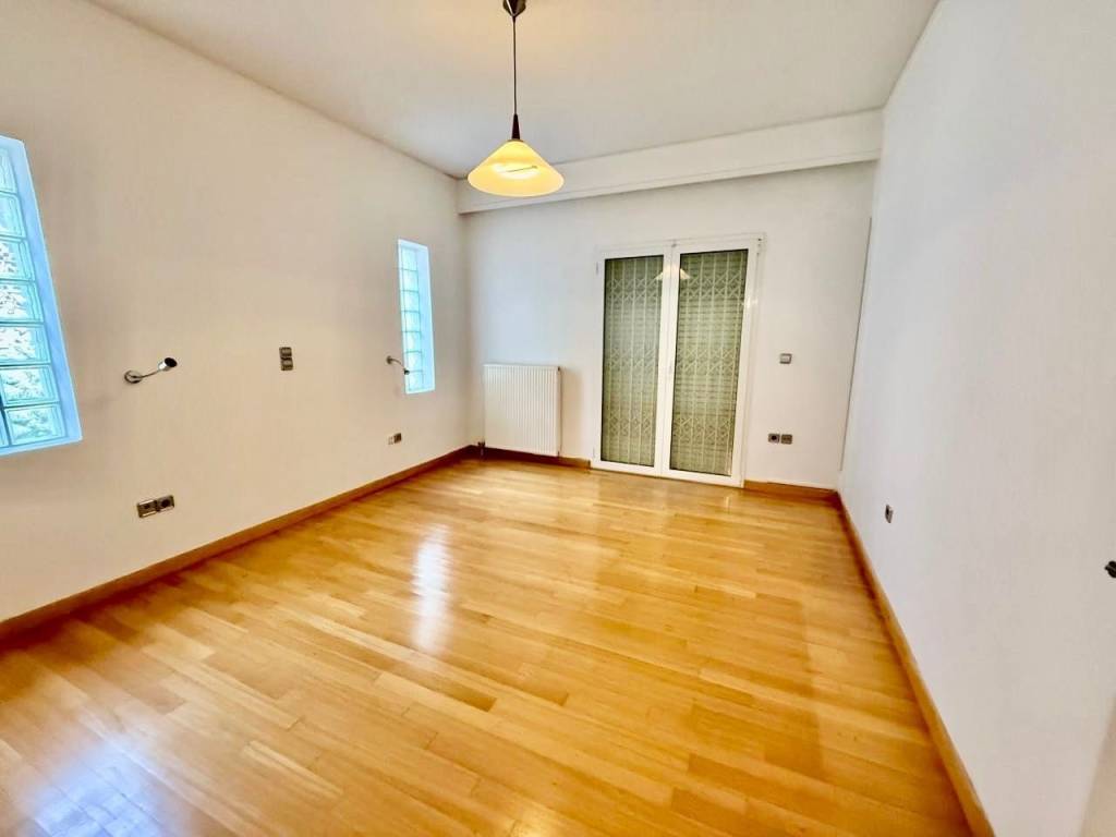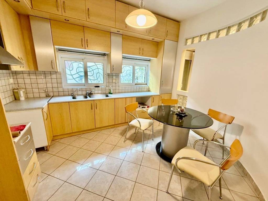 Ευρύχωρο και φωτεινό υπερυψωμένο - ισόγειο διαμέρισμα 152 τ.μ., σε ήσυχη γειτονιά στη Νέα Κηφισιά, μέσα στο πράσινο. Αποτελείται από τρία άνετα υπνοδωμάτια, μεγάλο σαλόνι με τζάκι, ξεχωριστή κουζίνα και δύο μπάνια, το ένα με μπανιέρα και το άλλο με ντουζιέρα. Διαθέτει αυτόνομη θέρμανση πετρελαίου, αποθηκευτικό χώρο δίπλα στο διαμέρισμα και θέση στάθμευσης με στέγαστρο. Το διαμέρισμα βρίσκεται σε διπλοκατοικία με μεγάλο, όμορφα διαμορφωμένο κοινόχρηστο κήπο.