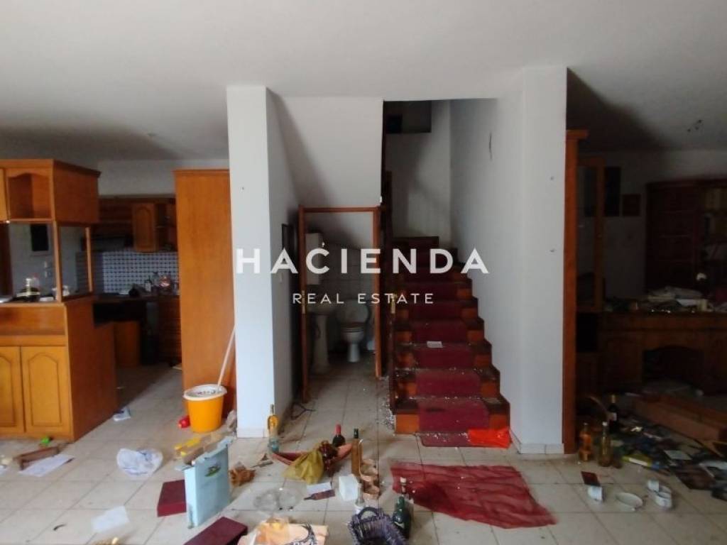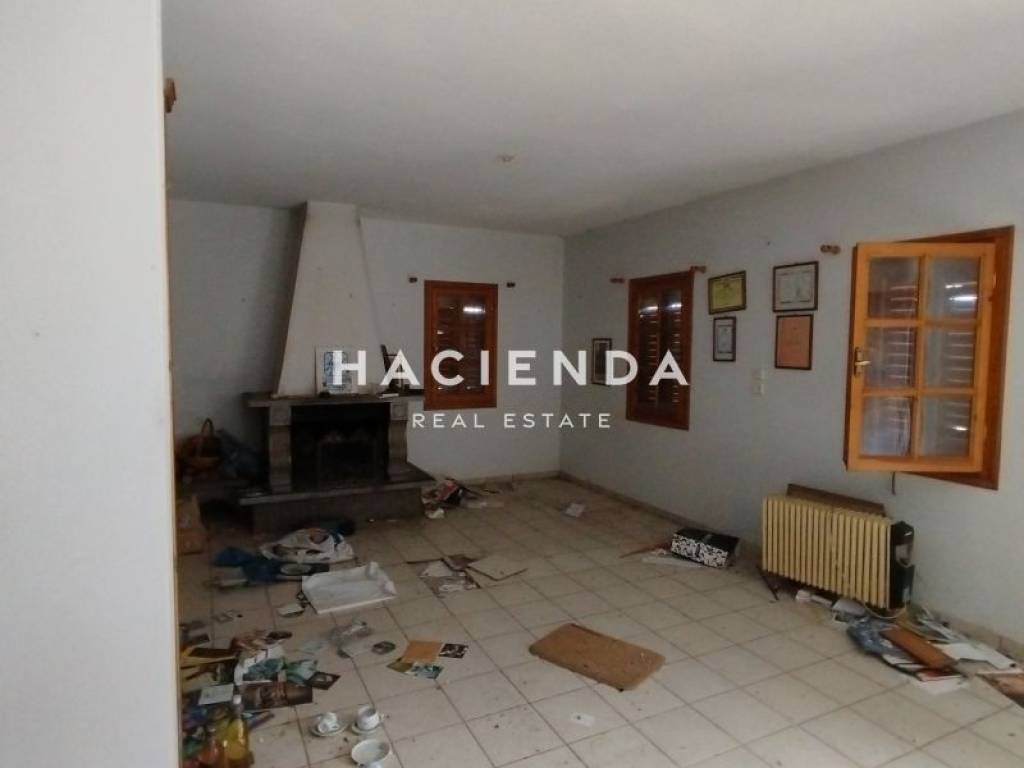 1ο επίπεδο: ενιαίος χώρος κουζίνα, σαλοτραπεζαρία, γραφείο με τζάκι και wc.