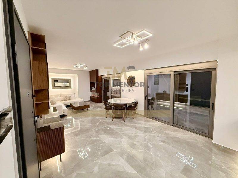Premium νεόδμητο διαμέρισμα 123 τ.μ. προς ενοικίαση στη Νέα Σμύρνη, στον 7ο όροφο, στο ύψος της Αγίας Παρασκευής και στα όρια με το Παλαιό Φάληρο. Το ακίνητο βρίσκεται σε εξαιρετικό σημείο, μόλις 150 μ. από στάση τραμ, 300 μ. από σχολεία και 300 μ. από πάρκα και παιδότοπους. Πρόκειται για νεόδμητο ακίνητο κατασκευής 2025, το οποίο δεν έχει κατοικηθεί ποτέ. Είναι διαμπερές οροφοδιαμέρισμα με απεριόριστη θέα τόσο από το μπροστινό όσο και από τα πίσω μπαλκόνια. Διαθέτει μεγάλο ενιαίο σαλόνι–κουζίνα με άριστη διαρρύθμιση, ένα υπνοδωμάτιο και δύο master υπνοδωμάτια, καθένα με δικό του WC, καθώς και ένα ευρύχωρο μπάνιο με premium έπιπλα και είδη υγιεινής. Τα πατώματα είναι ξύλινα στα τρία υπνοδωμάτια και γρανιτοπλακάκι στο σαλόνι και τους διαδρόμους. Τα πλακάκια του σαλονιού θα είναι λευκά με ελαφριά γκρι απόχρωση, ενώ τα μπάνια θα έχουν διαφορετικό χρωματισμό πλακιδίων από αυτόν των φωτογραφιών. Η κουζίνα είναι κατασκευασμένη με υλικά Α’ ποιότητας, με πιο σκούρα γκρι ντουλάπια, λευκό πάγκο χαλαζία και μαύρο γρανίτη νεροχύτη μονής γούρνας 90 εκ. Περιλαμβάνει ολοκαίνουργιες premium ηλεκτρικές συσκευές: φούρνο, πλυντήριο πιάτων, επαγωγική εστία και απορροφητήρα NEFF, εντοιχισμένο φούρνο μικροκυμάτων LG, καθώς και πλυντήριο–στεγνωτήριο LG 9 κιλών. Υπάρχει πρόβλεψη για ψυγείο διαστάσεων 92 πλάτος, 72 βάθος και 185 ύψος. Διαθέτει τοποθετημένες τέντες, σύστημα συναγερμού, καλωδιώσεις για κάμερες ασφαλείας, ολοκαίνουργια κλιματιστικά Wi-Fi, ηλιακό θερμοσίφωνα και ηλεκτρικό θερμοσίφωνα. Έχει ήδη εγκατεστημένη οπτική ίνα με ενεργό ίντερνετ και τηλεφωνική γραμμή, καθώς και έξυπνους διακόπτες για το αέριο και τον θερμοσίφωνα του ηλιακού. Οι διακόπτες του σπιτιού είναι μαύροι τύπου Legend, ενώ η πόρτα του σαλονιού θα είναι στο ίδιο χρώμα με αυτό που απεικονίζεται στις φωτογραφίες. Όλες οι ηλεκτρικές συσκευές, τα κλιματιστικά, οι τέντες και τα συστήματα ασφαλείας είναι ολοκαίνουργια και επώνυμα. Το ακίνητο θα είναι έτοιμο προς ενοικίαση τον Μάρτιο, με ζητούμενο μίσθωμα 2.150€ και διατίθεται αποκλειστικά για μακροχρόνια μίσθωση με ελάχιστη διάρκεια τα τρία έτη.