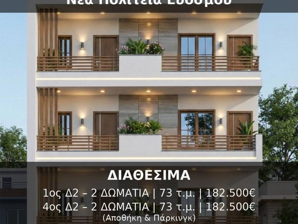 Νεόδμητα Διαμερίσματα στην Νέα Πολιτεία Ευόσμου Ανακαλύψτε τα νέα διαμερίσματα υψηλής αισθητικής, σχεδιασμένα για όσους αναζητούν ποιότητα, άνεση και στυλ στην καθημερινή τους ζωή. Μοντέρνος σχεδιασμός – ποιοτικά υλικά – ενεργειακή αποδοτικότητα. Οι κατοικίες ξεχωρίζουν για τη φωτεινότητα, τη λειτουργικότητα και τη διακριτική πολυτέλεια που αποπνέουν. ΔΙΑΘΕΣΙΜΑ.. 1ος Δ2 – 2 ΔΩΜΑΤΙΑ / 73,00 / 182.500€ (Αποθήκη-Πάρκινγκ) 30-30123 4ος Δ2 – 2 ΔΩΜΑΤΙΑ / 73,00 / 182.500€ (Αποθήκη-Πάρκινγκ) 30-30124 * «Οι ζητούμενες τιμές είναι 182.500€, ωστόσο σε περίπτωση άμεσης αγοράς με μετρητά υπάρχει περιθώριο για καλύτερη τιμή.» Επικοινωνήστε μαζί μας σήμερα για περισσότερες πληροφορίες ή για επίσκεψη στον χώρο. Πολιτεία Ακινήτων Real Estate www.politeiakiniton.gr Σμύρνης 43 / Εύοσμος
