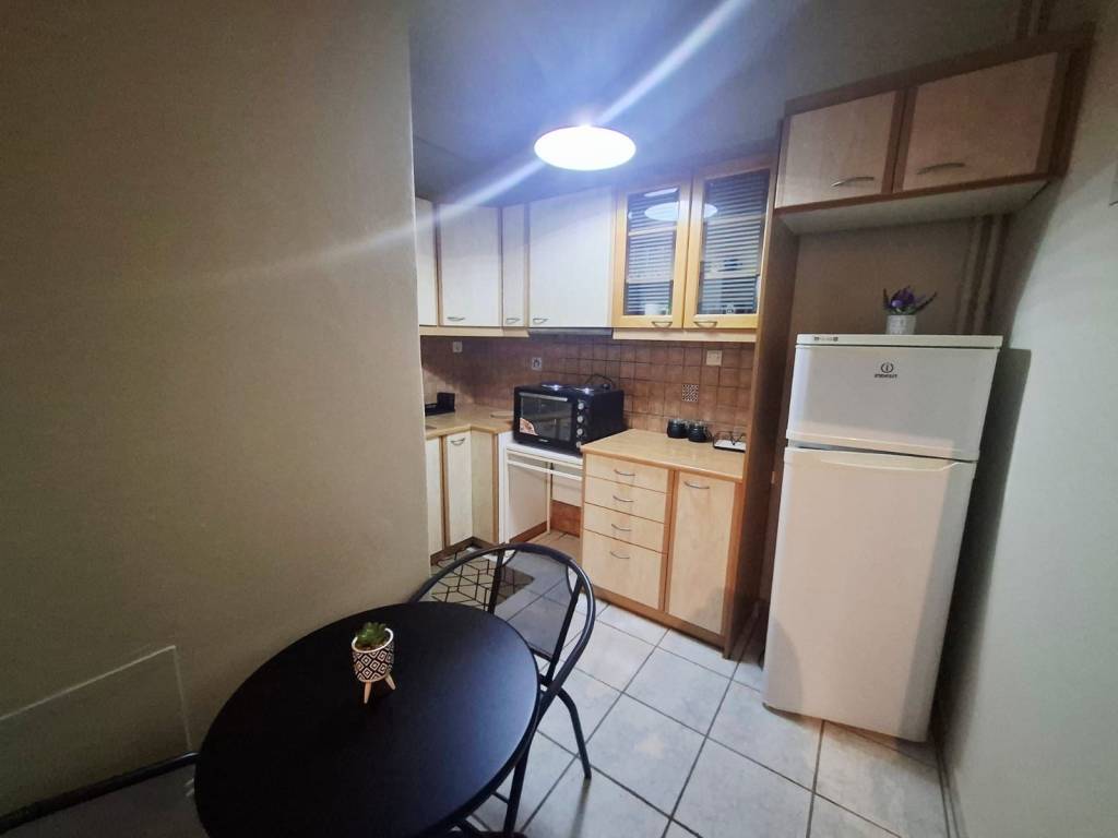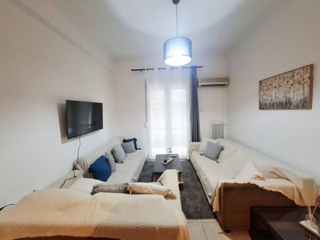 Επιπλωμένο και εξοπλισμένο με συσκευές διαμέρισμα υπερυψωμένου ισογείου 55τμ, 400 μέτρα από ηλεκτρικό σταθμό Αγίου Νικολάου, κατασκευής 1964, σε πολύ καλή κατάσταση με πρόσφατη ανακαίνιση. Αποτελείται από ένα υπνοδωμάτιο, σαλόνι, κουζίνα, μπάνιο και ένα μικρό μπαλκόνι. Διαθέτει 2 κλιματιστικά για θέρμανση και ψύξη, κουφώματα αλουμινίου, σίτες και πόρτα ασφαλείας.