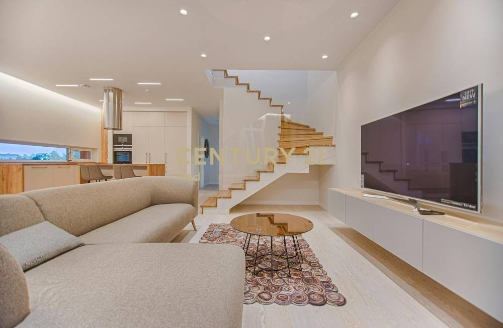 1ο επίπεδο/4ος όροφος: Open plan σαλονοκουζίνα με τζάκι, 1 WC επισκεπτών, 1 master υ/δ και μπαλκόνι με ιδιωτική πισίνα.