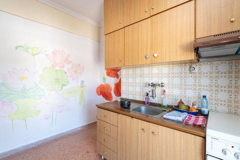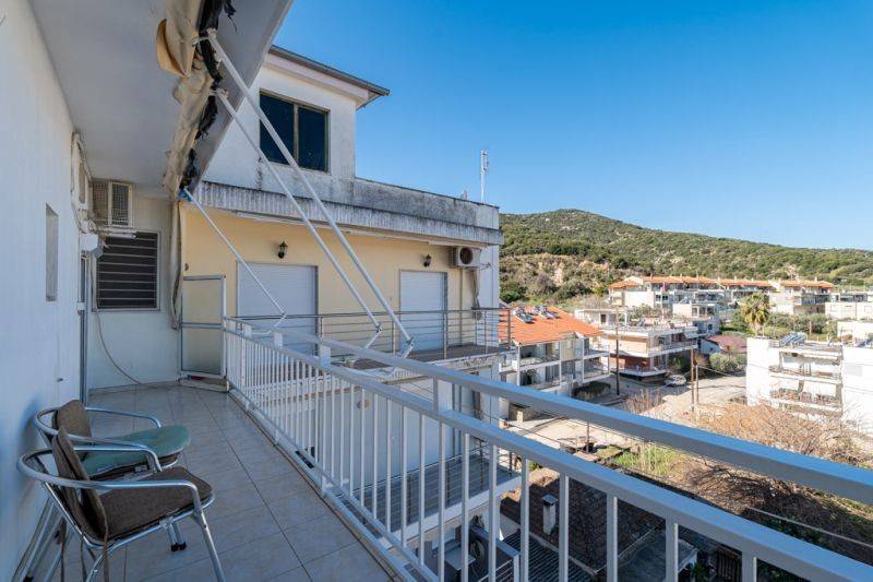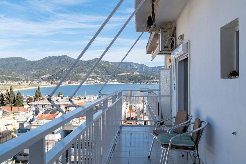 Αποτελείται από ένα υπνοδωμάτιο, μία κουζίνα και ένα μπάνιο. Διαθέτει μεγάλο μπαλκόνι με θέα στη θάλασσα κατά μήκος όλων των δωματίων και πρόσφατη εξωτερική μόνωση στην ταράτσα. Βρίσκεται στον τρίτο όροφο πολυκατοικίας με ασανσέρ και απέχει μόλις 200 μέτρα από τη θάλασσα. Αποτελεί εξαιρετική πρόταση είτε για ιδιοκατοίκηση τους θερινούς μήνες είτε για επενδυτική χρήση.