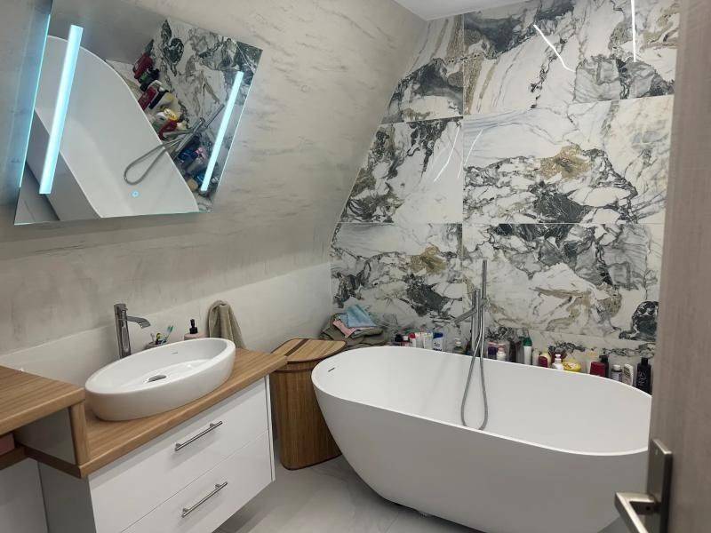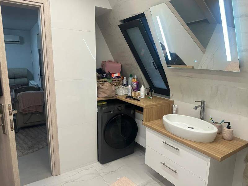 Μεζονέτα 5-6ου ορόφου 125 τετραγωνικά νεόδμητη. υπόγειο πάρκινγκ με φόρτιση ηλεκτρικού αυτοκινήτου και υπόγεια μεγάλη αποθήκη με ντεξιονς. ενεργειακό τζάκι. 3 υπνοδωμάτια το ένα μάστερ με δικό του μπάνιο και βεστιάριο ρούχων. αυτονομη θέρμανση φυσικό αέριο, μπρος πίσω βεράντες με τέντες.