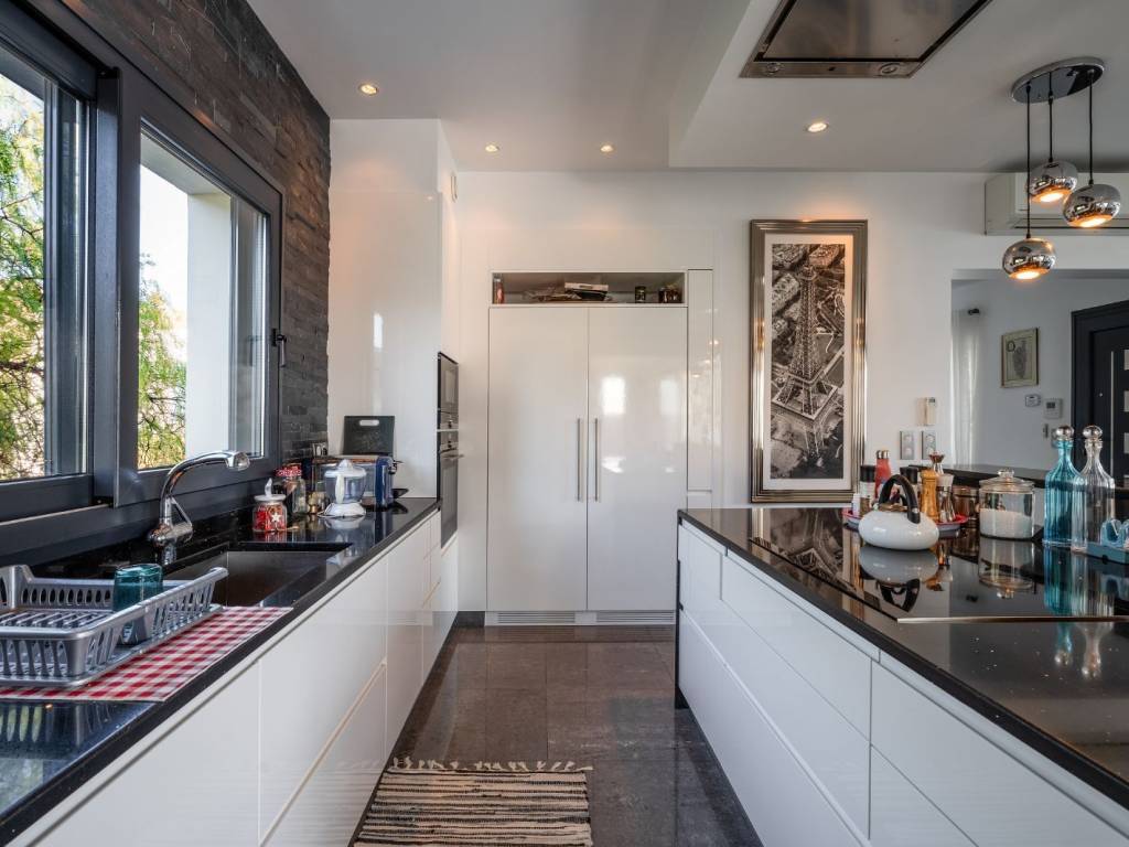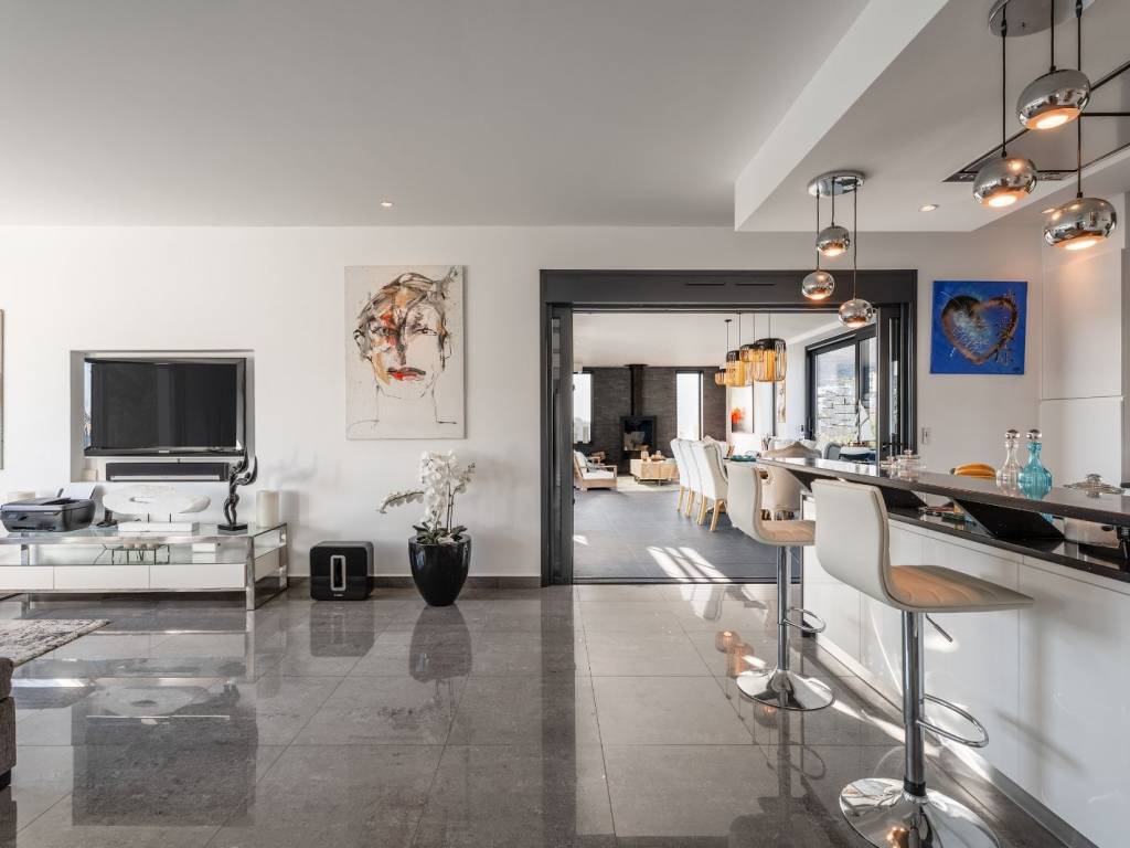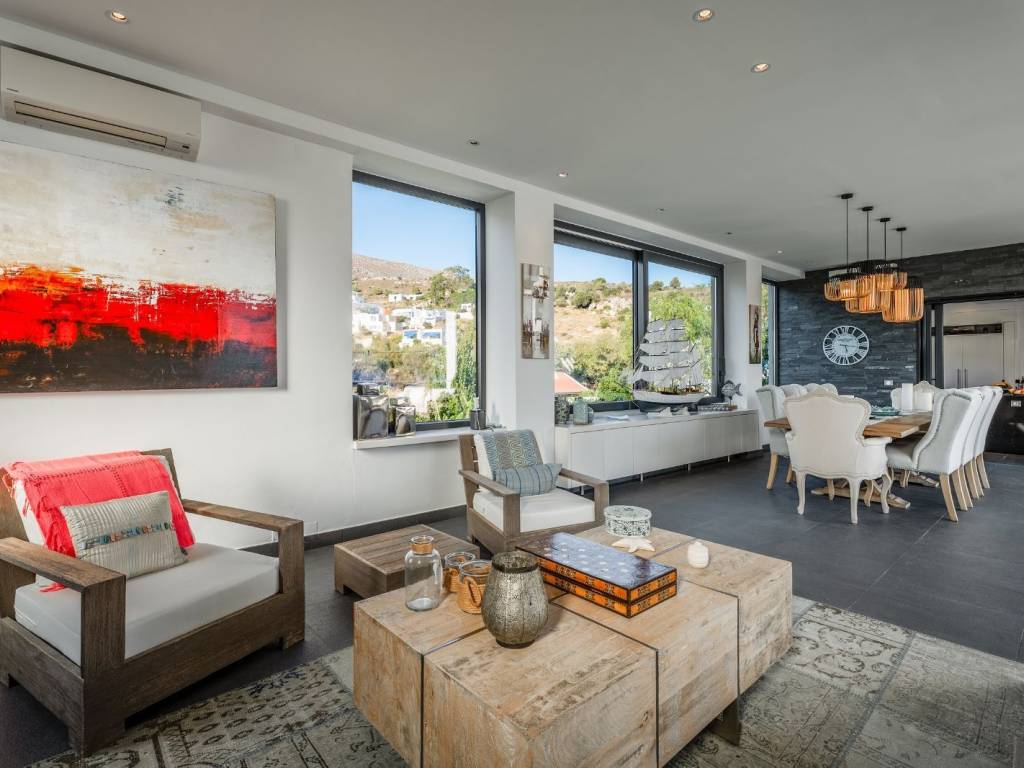 Μια εντυπωσιακή μονοκατοικία με θέα στην θάλασσα και το βουνό σε προνομιακή τοποθεσία στην Αλίνδα της Λέρου. Η κατοικία συνολικού εμβαδού 394τ.μ. είναι χτισμένη σε οικόπεδο 1,134τ.μ., και αναπτύσσεται σε 2 επίπεδα. Στον κεντρικό επίπεδο συναντάμε ένα ευρύχωρο καθιστικό με τζάκι και μεγάλες γυάλινες επιφάνειες που ανοίγουν, δημιουργώντας απρόσκοπτη σύνδεση με μια μεγάλη βεράντα. Η τραπεζαρία και η open plan κουζίνα έχουν επίσης άμεση πρόσβαση στον εξωτερικό χώρο, όπου κυριαρχεί η πανοραμική θέα στη θάλασσα και το βουνό, καθώς και ένα κομψό εξωτερικό bar. Στο ίδιο επίπεδο υπάρχει 1 master υπνοδωμάτιο με en-suite μπάνιο και ευρύχωρο walk-in closet, γραφείο με πρόσβαση σε βεράντα και 1 μπάνιο. Το ισόγειο φιλοξενεί 3 υπνοδωμάτια, όλα με en-suite μπάνια και walk-in closets, με άμεση πρόσβαση στον καταπράσινο κήπο. Επιπλέον, υπάρχει αποθήκη, laundry room και χώρος αποθήκευσης. Υπάρχει επίσης ένα ανεξάρτητο στούντιο με δικό του μπάνιο, ιδανικό για φιλοξενούμενους. Ο εξωτερικός χώρος είναι εξίσου εντυπωσιακός, με ξύλινη πέργκολα και καθιστικό, πλήρως εξοπλισμένο BBQ και ξυλόφουρνο, καθώς και άνετο χώρο στάθμευσης. Μία εξαιρετική κατοικία δίπλα στην θάλασσα, στο όμορφο νησί της Λέρου.