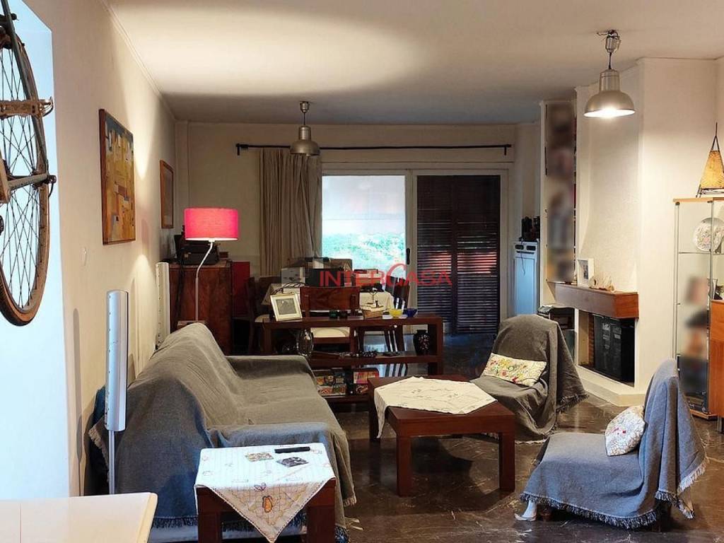 Αγία Παρασκευή, διαμέρισμα, 132τ.μ, 2ου, σε πολύ καλή κατάσταση, 3 υπνοδωμάτια, 2 μπάνια, πολύ μεγάλο σαλόνι με τζάκι, ανεξάρτητη κουζίνα, κεντρική θέρμανση φυσικού αερίου, μαρμάρινα δάπεδα σε όλους τους χώρους και ξύλινα στα υπνοδωμάτια, μικρή εσωτερική αποθήκη και δύο πατάρια και δυνατότητα χρήσης της κοινόχρηστης αποθήκης κοντά στον κήπο, μεγάλη βεράντα με θέα σε καταπράσινο και ήσυχο κήπο, τρεις κοινόχρηστες θέσεις στάθμευσης εξωτερικά της πολυκατοικίας (οι οποίες καταλαμβάνονται κατά σειρά προτεραιότητας, με αρκετή διαθεσιμότητα λόγω ιδιόκτητων θέσεων άλλων ενοίκων), σε τετραώροφη πολυκατοικία με κοινόχρηστο κήπο με πολλά δέντρα και χώρους αναψυχής (μπάσκετ, βόλεϊ, κούνιες, μονόζυγα, πινγκ πονγκ).