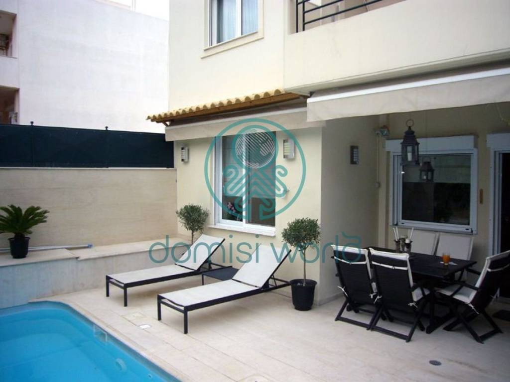 Το υπερυψωμένο ισόγειο φιλοξενεί την κύρια είσοδο της κατοικίας, η οποία διαθέτει πόρτα ασφαλείας. Περιλαμβάνει σαλόνι με τζάκι, τραπεζαρία, πρόβλεψη για δεύτερη κουζίνα, τουαλέτα επισκεπτών και δύο μπαλκόνια. Ολόκληρος ο όροφος είναι κατασκευασμένος με παρκέ δάπεδο μακράς διαρκείας με πλαίσιο και μάρμαρα. Ο πρώτος όροφος περιλαμβάνει ένα χολ, τρία υπνοδωμάτια με μεγάλες εντοιχισμένες ντουλάπες με μηχανικά συστήματα, ένα μπάνιο με μπανιέρα υδρομασάζ και δύο μπαλκόνια. Αυτό το επίπεδο είναι επίσης κατασκευασμένο με ανθεκτικό παρκέ δάπεδο. Ο δεύτερος όροφος, που λειτουργεί ως roof garden, προσφέρει θέα στη θάλασσα και είναι εξοπλισμένος με χώρο μπάρμπεκιου και πρόβλεψη για νιπτήρα. Η μεζονέτα διαθέτει τρία υπνοδωμάτια συν ένα WC επισκεπτών, αυτόνομη θέρμανση, ηλιακό θερμοσίφωνα τριπλής ενέργειας, δύο τζάκια, κλιματισμό, δύο αποθήκες και δύο επιπλέον αποθηκευτικούς χώρους, ηλεκτρικά παντζούρια, κουφώματα αλουμινίου με διπλά τζάμια και σίτες, σύστημα συναγερμού, τέντες, διαμορφωμένο κήπο με μαρμάρινη πισίνα και ιδιωτικό χώρο στάθμευσης. Βρίσκεται πέντε λεπτά με το αυτοκίνητο από την παραλία και το κέντρο της Βάρκιζας.