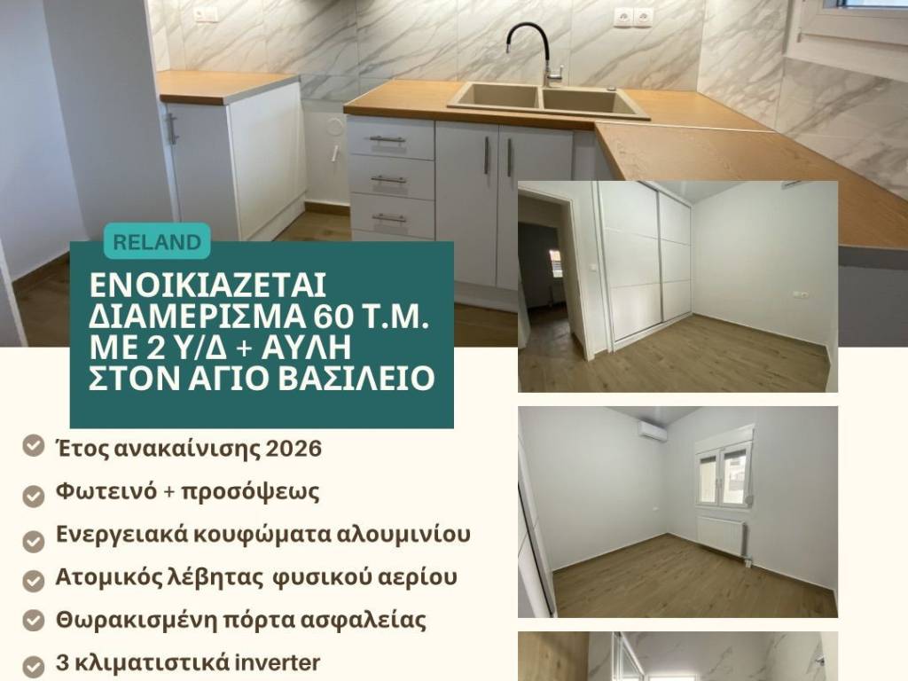 RELAND Ενοικιάζεται πλήρως ανακαινισμένο διαμέρισμα 60 τ.μ. με 2 υ/δ ισογείου στην περιοχή του Αγίου Βασιλείου στο Βόλο. Αποτελείται από σαλόνι, χωλ, ανεξάρτητη κουζίνα, 2 υπνοδωμάτια, μπάνιο και 2 αυλές. ΧΑΡΑΚΤΗΡΙΣΤΙΚΑ ΑΚΙΝΗΤΟΥ : - Έτος ανακαίνισης 2026 - Πόρτα ασφαλείας - Ενεργειακά κουφώματα αλουμινίου - Σίτες - Τέντες - Ατομικός λέβητας φυσικού αερίου - 3 κλιματιστικά inverter (1 στο σαλόνι και από 1 σε κάθε Υ/Δ). - Διαθέτει συναγερμό - Χωρίς κοινόχρηστα Βρίσκεται σε πολύ καλή περιοχή, με εύκολη εύρεση parking, κοντά σε σχολεία, μάρκετ, στάση αστικού λεωφορείου και 10 λεπτά από το κέντρο του Βόλου. Δες το σπίτι τώρα! ⬇️ https://youtube.com/shorts/-hc5BPsiE3I?is=dP6TR-B6P7d8qxRJ ΑΜΕΣΑ ΔΙΑΘΕΣΙΜΟ! Για περισσότερες πληροφορίες ή προγραμματισμό ραντεβού επικοινωνήστε στο : 6970080280