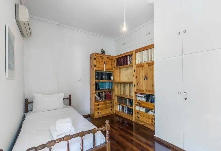 οροφοδιαμέρισμα 185 τ.μ. στο Παλαιό Φάληρο, 1ος όροφος, γωνιακό, φωτεινό, μόλις 500 μ. από τη θάλασσα. Αποτελείται από 3 υπνοδωμάτια, 2 μπάνια, 2 σαλόνια και κουζίνα. Διαθέτει αυτόνομη θέρμανση (ρεύμα), κλιματισμό, αποθήκη, θέση parking, ασανσέρ και πόρτα ασφαλείας. Μη επιπλωμένο.