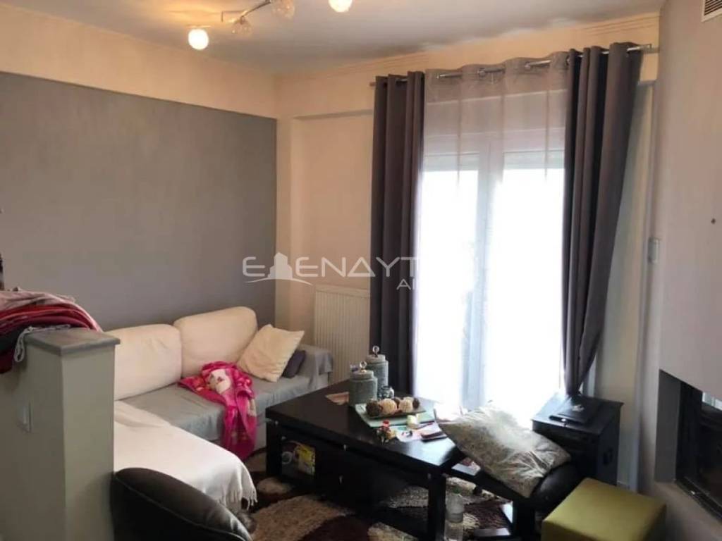 Στον ημιόροφο βρίσκεται το σαλόνι με ενεργειακό τζάκι νερού (συνδεδεμένο με τα καλοριφέρ, αξίας 4.000€) και η ολοκαίνουργια κουζίνα (αξίας 5.000€).