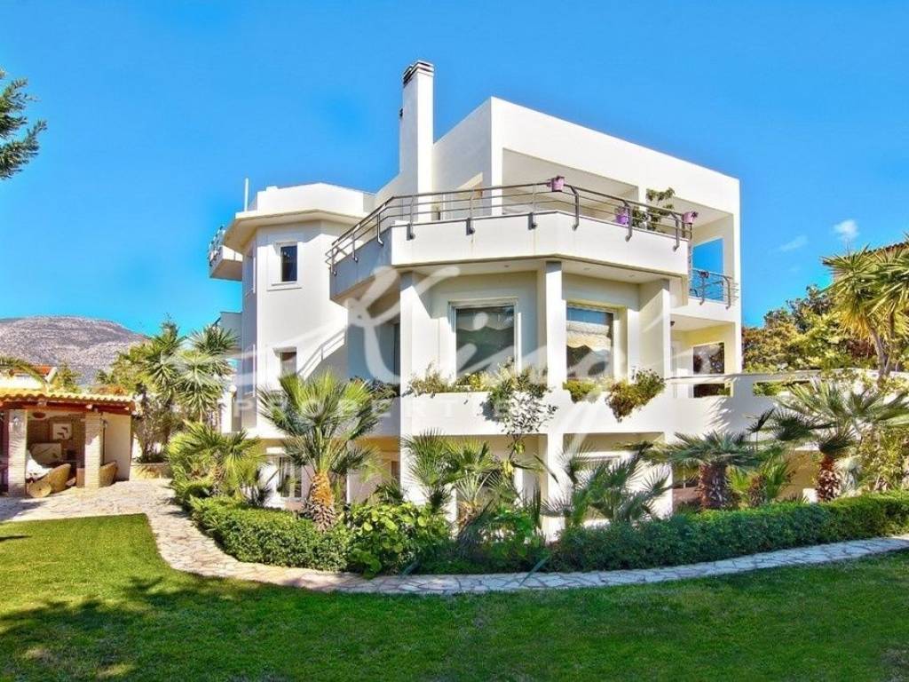 ΛΑΓΟΝΗΣΙ, πολύ κοντά στη θάλασσα (500μ), πωλείται εξαιρετική βίλα 510τμ, πολυτελούς κατασκευής, η οποία αποτελείται από 2 κατοικίες. Η 1η μεζονέτα έχει συνολική επιφάνεια 300τμ σε δύο επίπεδα, το κάθε ένα από αυτά έχει δική του είσοδο και διαθέτει στο ισόγειο καθιστικό με τζάκι, πλήρως εξοπλισμένη κουζίνα με ψυγείο– ντουλάπα, εντοιχισμένες εστίες, φούρνο και φούρνο μικροκυμάτων, καθώς και πλυντήριο πιάτων, 3 υπνοδωμάτια, 2 πλήρη μπάνια, στον 1ο όροφο 2 υπνοδωμάτια (το ένα master), 2 μπάνια, άνετο σαλόνι με τζάκι, τραπεζαρία και γραφείο. Ακριβώς από πάνω βρίσκεται η 2η μεζονέτα η οποία έχει συνολική επιφάνεια 170τμ και διαθέτει στο 2ο όροφο σαλόνι, τραπεζαρία και κουζίνα με όλες τις ηλεκτρικές συσκευές, 2 υπνοδωμάτια, 2 πλήρη μπάνια, στον 3ο όροφο 1 υπνοδωμάτιο (35τμ) με το δικό του μπάνιο και μεγάλη βεράντα 100τμ με εκπληκτική θέα σε βουνό και θάλασσα, bbq με νεροχύτη και ψυγείο. Ενδοδαπέδιο σύστημα θέρμανσης– ψύξης καθώς και κλιματιστικά, πόρτα ασφαλείας, συναγερμός, διπλά τζάμια, σίτες, 3 ανοικτές θέσεις στάθμευσης, καταπράσινος κήπος με μεγάλο κτιστό κιόσκι, κτιστό και καλυμμένο με στέγη bbq, νεροχύτη, ψυγείο, πλυντήριο πιάτων και σαλόνι με τραπεζαρία εξωτερικού χώρου, KING`S PROPERTIES - www.kingsproperties.gr - info@kingsproperties.gr - τηλ: 210 8014300