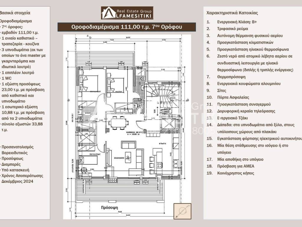 Υπό Κατασκευή Οροφοδιαμέρισμα 111 τ.μ. 7ου ορόφου στην Καλλιθέα Διατίθεται προς πώληση υπό κατασκευή οροφοδιαμέρισμα 111,00 τ.μ., στον 7ο όροφο ενός πολυτελούς οκταώροφου κτηρίου κατοικιών ενεργειακής κλάσης Β+ στην Καλλιθέα. Το διαμέρισμα είναι προσόψεως, διαμπερές, ευάερο και ευήλιο, με βορειοδυτικό προσανατολισμό. Περιλαμβάνει έναν ενιαίο χώρο καθιστικού-τραπεζαρίας-κουζίνας, τρία υπνοδωμάτια (εκ των οποίων το ένα master με γκαρνταρόμπα και ιδιωτικό λουτρό), ένα επιπλέον λουτρό και ένα WC, ένα μεγάλο εξώστη προσόψεως 23,00 τ.μ. με πρόσβαση από το καθιστικό, έναν εξώστη 10,88 τ.μ. με πρόσβαση από τα υπνοδωμάτια, μία θέση στάθμευσης υπογείου ή Pilotis και μία αποθήκη στο υπόγειο. Χαρακτηριστικά Παροχών Κατοικίας Ενεργειακή κλάση: Β+, τριφασικό ρεύμα, αυτόνομη θέρμανση φυσικού αερίου, προεγκατάσταση κλιματιστικών, προεγκατάσταση ηλιακού θερμοσίφωνα, ζεστό νερό από ατομικό λέβητα αερίου σε συνδυαστική λειτουργία με ηλιακό θερμοσίφωνα, θερμοπρόσοψη, ενεργειακά κουφώματα αλουμινίου, σίτες, πόρτα ασφαλείας, προεγκατάσταση συναγερμού, δορυφορική κεραία τηλεόρασης, ενεργειακό τζάκι, δάπεδα από ξύλο στα υπνοδωμάτια, από πλακάκι στους υπόλοιπους χώρους, εγκατάσταση φόρτισης ηλεκτρικού αυτοκινήτου μία θέση στάθμευσης, μία αποθήκη στο υπόγειο, πρόσβαση για ΑΜΕΑ, κοινόχρηστος κήπος. Τοποθεσία Η κατοικία βρίσκεται σε μια ήσυχη περιοχή της Καλλιθέας, προσφέροντας ιδανική συνδυαστική τοποθεσία που παρέχει ηρεμία και εγγύτητα στις κεντρικές οδικές αρτηρίες και Μέσα Μαζικής Μεταφοράς. Προσφέρει εύκολη πρόσβαση στο κέντρο της Αθήνας, στον Πειραιά και στην Αθηναϊκή Ριβιέρα, καθιστώντας την ιδανική επιλογή για οικογένειες και επαγγελματίες. ► ALFAMESITIKI Real Estate Group -- Μέλος Συλλόγου Μεσιτών - Πιστοποιημένο Μεσιτικό Γραφείο ► Για περισσότερες λεπτομέρειες σχετικά με το ακίνητο, το κτίριο ή την περιοχή καθώς και για την επίσκεψη του ακινήτου μπορείτε να επισκεφτείτε την σελίδα - https://www.alfamesitiki.gr/pdetails?id=Α-146261 ► Για ευκαιρίες σε παρόμοια ακίνητα και σε άλλες περιοχές με φωτογραφίες επισκεφτείτε τη σελίδα μας στο alfamesitiki.gr ► Τελευταία ενημέρωση 26/3/2026 ► Ακολουθήστε μας και στο Facebook www.facebook.com/alfamesitiki.gr