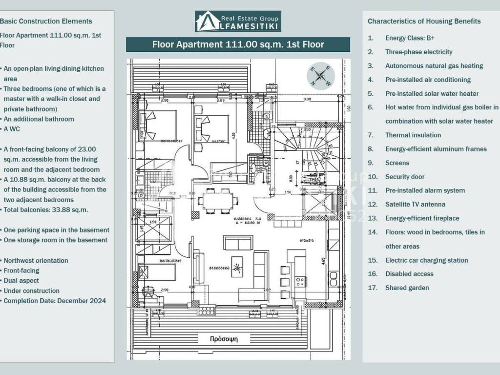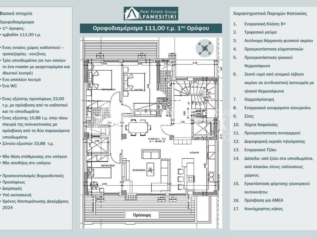 Διατίθεται προς πώληση υπό κατασκευή οροφοδιαμέρισμα 111,00 τ.μ., στον 1ο όροφο ενός πολυτελούς οκταώροφου κτηρίου κατοικιών ενεργειακής κλάσης Β+ στην Καλλιθέα. Διάταξη Χώρων Το διαμέρισμα είναι προσόψεως, διαμπερές, ευάερο και ευήλιο, με βορειοδυτικό προσανατολισμό. Περιλαμβάνει έναν ενιαίο χώρο καθιστικού-τραπεζαρίας-κουζίνας, τρία υπνοδωμάτια (εκ των οποίων το ένα master με γκαρνταρόμπα και ιδιωτικό λουτρό), ένα επιπλέον λουτρό και ένα WC, ένα μεγάλο εξώστη προσόψεως 23,00 τ.μ. με πρόσβαση από το καθιστικό, έναν εξώστη 10,88 τ.μ. με πρόσβαση από τα υπνοδωμάτια, μία θέση στάθμευσης υπογείου ή Pilotis και μία αποθήκη στο υπόγειο. Χαρακτηριστικά Παροχών Κατοικίας Ενεργειακή κλάση: Β+, τριφασικό ρεύμα, αυτόνομη θέρμανση φυσικού αερίου, προεγκατάσταση κλιματιστικών, προεγκατάσταση ηλιακού θερμοσίφωνα, ζεστό νερό από ατομικό λέβητα αερίου σε συνδυαστική λειτουργία με ηλιακό θερμοσίφωνα, θερμοπρόσοψη, ενεργειακά κουφώματα αλουμινίου, σίτες, πόρτα ασφαλείας, προεγκατάσταση συναγερμού, δορυφορική κεραία τηλεόρασης, ενεργειακό τζάκι, δάπεδα από ξύλο στα υπνοδωμάτια, από πλακάκι στους υπόλοιπους χώρους, εγκατάσταση φόρτισης ηλεκτρικού αυτοκινήτου μία θέση στάθμευσης, μία αποθήκη στο υπόγειο, πρόσβαση για ΑΜΕΑ, κοινόχρηστος κήπος. Τοποθεσία Η κατοικία βρίσκεται σε μια ήσυχη περιοχή της Καλλιθέας, προσφέροντας ιδανική συνδυαστική τοποθεσία που παρέχει ηρεμία και εγγύτητα στις κεντρικές οδικές αρτηρίες και Μέσα Μαζικής Μεταφοράς. Προσφέρει εύκολη πρόσβαση στο κέντρο της Αθήνας, στον Πειραιά και στην Αθηναϊκή Ριβιέρα, καθιστώντας την ιδανική επιλογή για οικογένειες και επαγγελματίες. ► ALFAMESITIKI Real Estate Group -- Μέλος Συλλόγου Μεσιτών - Πιστοποιημένο Μεσιτικό Γραφείο ► Για περισσότερες λεπτομέρειες σχετικά με το ακίνητο, το κτίριο ή την περιοχή καθώς και για την επίσκεψη του ακινήτου μπορείτε να επισκεφτείτε την σελίδα - https://www.alfamesitiki.gr/pdetails?id=Α-146258 ► Για ευκαιρίες σε παρόμοια ακίνητα και σε άλλες περιοχές με φωτογραφίες επισκεφτείτε τη σελίδα μας στο alfamesitiki.gr ► Τελευταία ενημέρωση 26/3/2026 ► Ακολουθήστε μας και στο Facebook www.facebook.com/alfamesitiki.gr