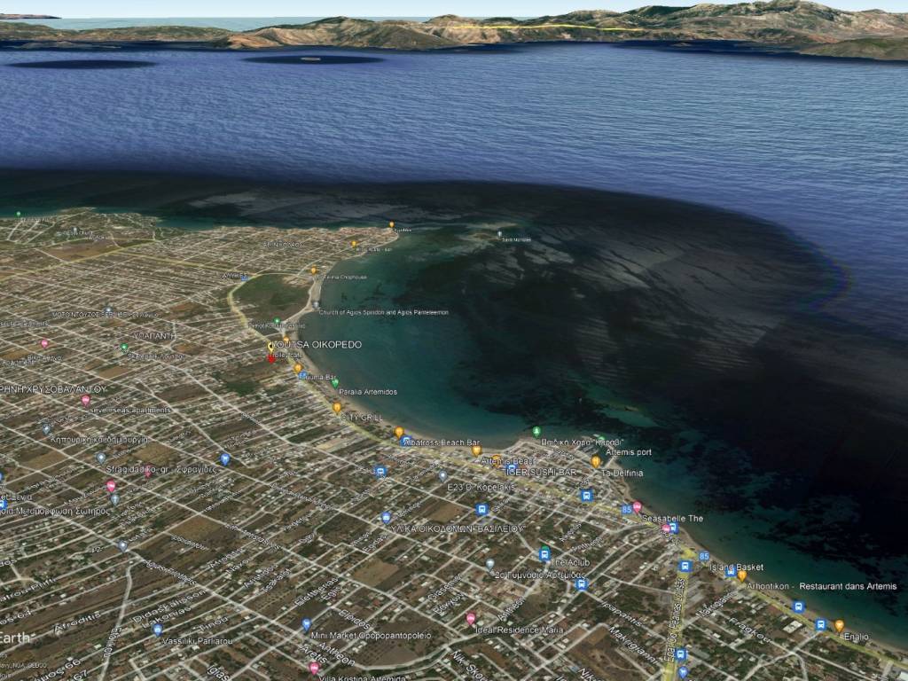 ΑΡΤΕΜΙΔΑ οικόπεδο 206 τ.μ., εντός σχεδίου, τέταρτο σπίτι 70μ από θάλασσα επί της οδού Ερμού πεζόδρομος, επίπεδο, σ.δ. 0,4 πρόσοψη 15 μ., άρτιο, διαμπερές, παλαιό κτίσμα, ρεύμα, νερό, πηγάδι, βόθρος Μπορεί να χτιστεί συνολική επιφάνεια κυρίων χώρων 76 τ.μ. σε έναν ή δύο ορόφους, με μέγιστο ύψος 8,5μ. Πέραν των κύριων χώρων που δύνανται να ανεγερθούν (76 τμ) μπορούν επίσης να προστεθούν βοηθητικοί χώροι που δεν προσμετρώνται στο συντελεστή δόμησης όπως υπόγεια, σοφίτα, ημιυπαίθριοι