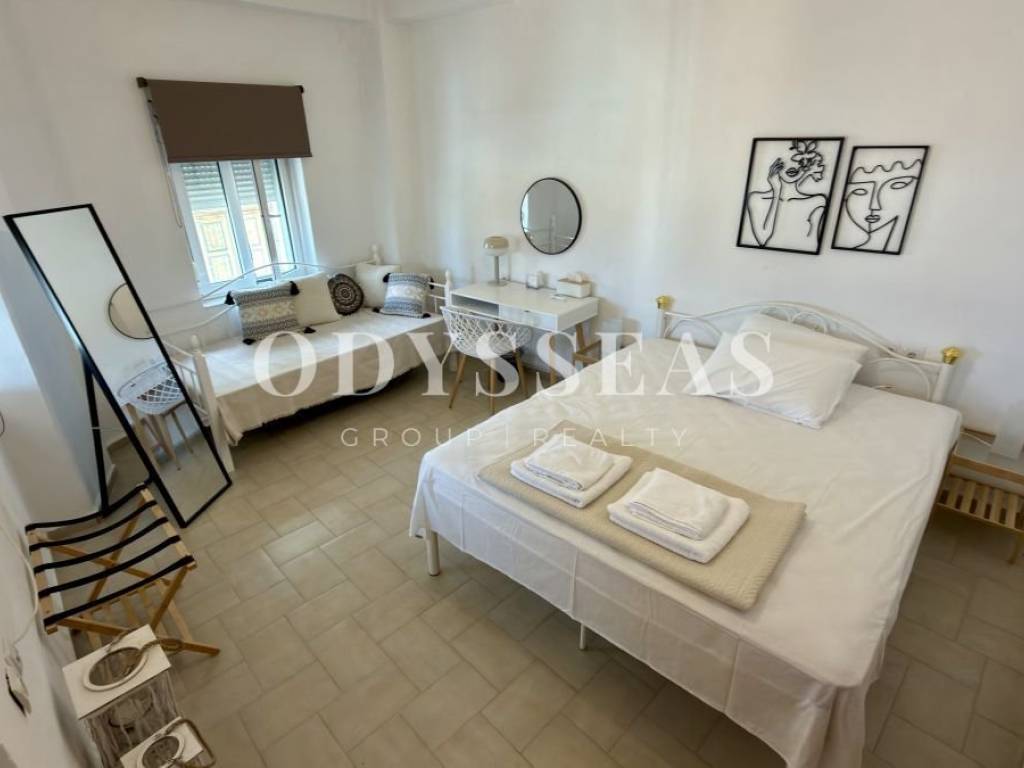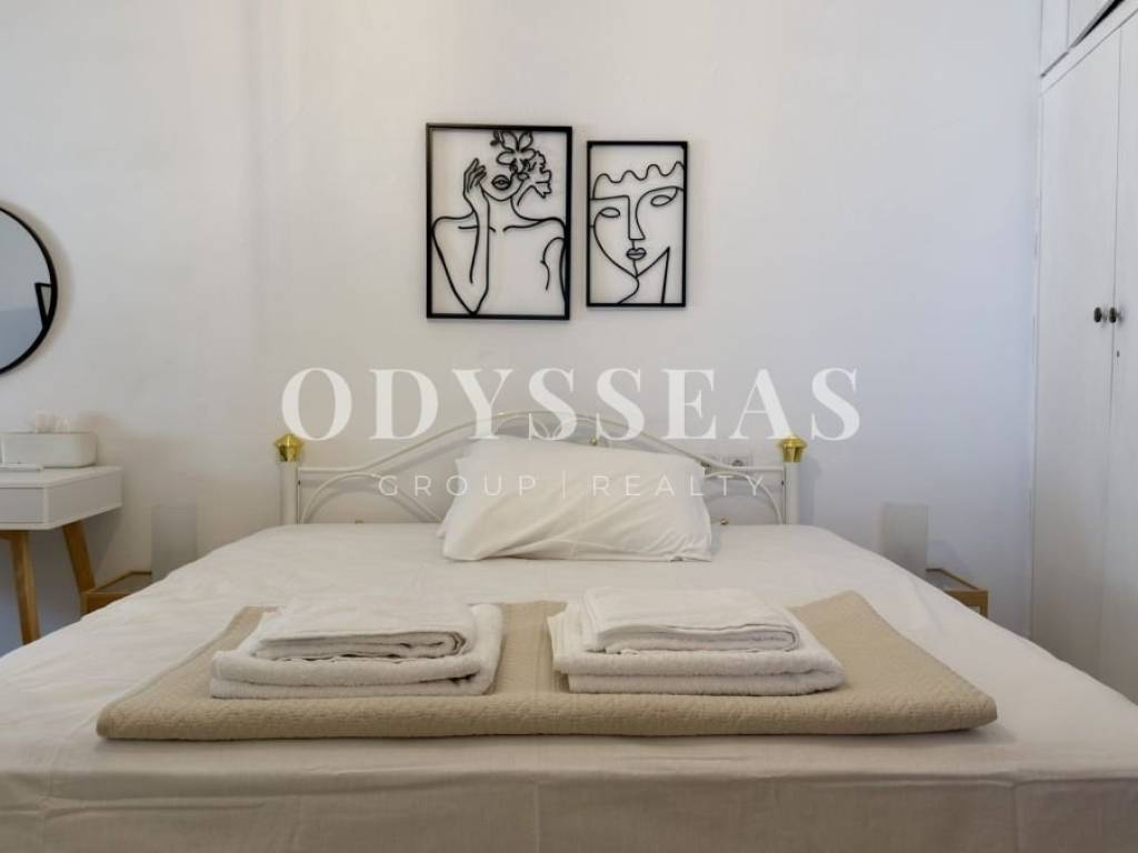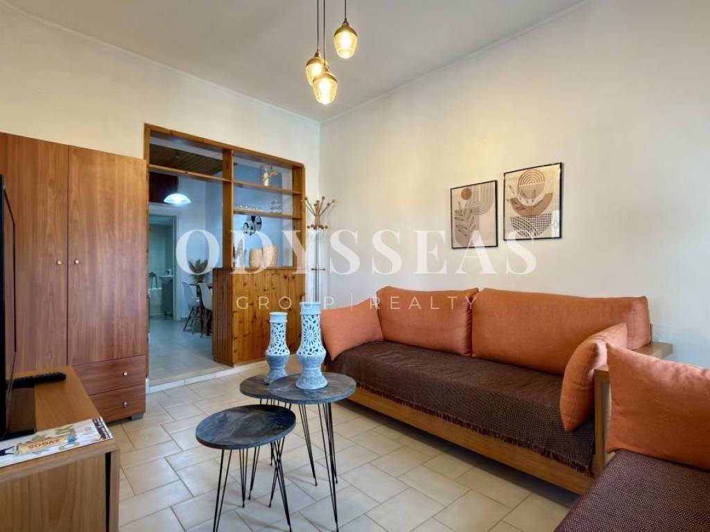 Πρόκειται για ανεξάρτητο διαμέρισμα 1ου ορόφου, συνολικής επιφάνειας 55,51 τ.μ., τοποθετημένο σε διπλοκατοικία, το οποίο βρίσκεται σε άριστη κατάσταση, καθώς ανακαινίστηκε πλήρως το προηγούμενο έτος. Το ακίνητο είναι πέτρινης κατασκευής του 1965, ιδιαίτερα καλοσυντηρημένο, και διακρίνεται για τη διαχρονική του αισθητική και τη στιβαρότητά του. Αποτελείται από ένα άνετουπνοδωμάτιο, λειτουργική κουζίνα, φωτεινό σαλόνι, μπάνιο με W/C, καθώς και μία όμορφη βεράντα που προσφέρει ανεμπόδιστη θέα τόσο στη θάλασσα όσο και στο βουνό. Διατίθεται πλήρως επιπλωμένο και εξοπλισμένο με ηλεκτρικές συσκευές,ενώ διαθέτει τόσο ηλιακό όσο και ηλεκτρικό θερμοσίφωνα. Πρόκειται για μία εξαιρετική επιλογή είτε ως εξοχική κατοικία είτε ως επενδυτικό ακίνητο, χάρη στηνπρονομιακή του τοποθεσία, την άψογη κατάστασή του και τις υψηλές προδιαγραφές της ευρύτερης περιοχής.