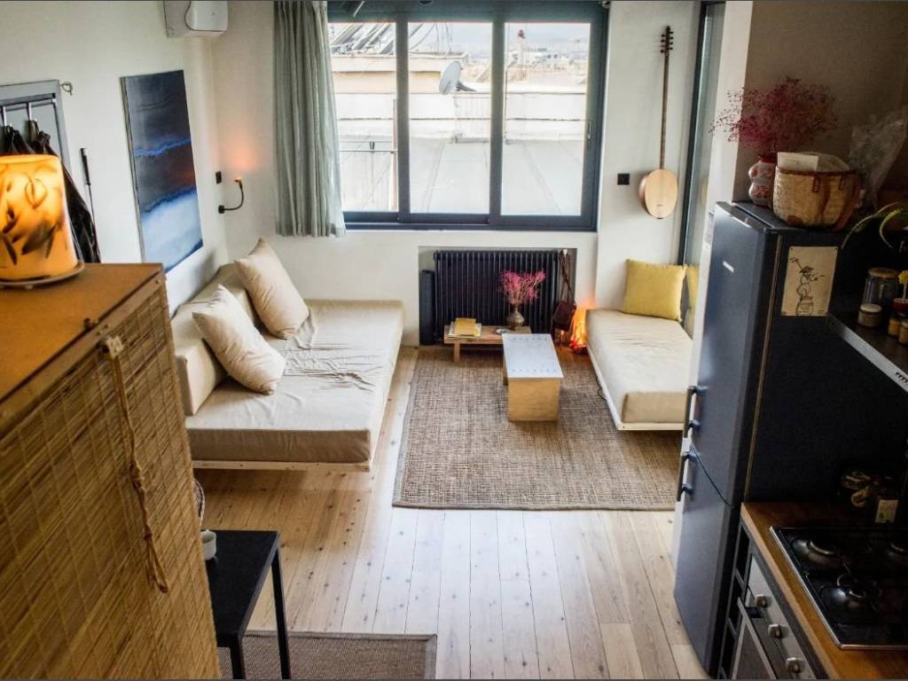 Ρετιρέ/Δώμα στο κέντρο της Αθήνα με πανοραμική θέα Ενοικιάζεται ιδιαίτερο ρετιρέ στο κέντρο της Αθήνας, με ανεμπόδιστη θέα που εκτείνεται από τον Λόφο Φινοπούλου έως την Πάρνηθα και τον Πειραιάς. Το ακίνητο έχει ανακαινιστεί πλήρως από τα μπετά, με έμφαση στην ποιότητα των υλικών και την προσεγμένη αισθητική, δημιουργώντας έναν χώρο σύγχρονο, λειτουργικό και ευχάριστο για καθημερινή διαβίωση. Η κύρια επιφάνεια είναι 32 τ.μ. και συμπληρώνεται από 32 τ.μ. στεγασμένη βεράντα, η οποία λειτουργεί ως φυσική προέκταση του σπιτιού, προσφέροντας έναν ήσυχο και ιδιαίτερο χώρο με θέα, διαμορφωμένο με φυτά που ενισχύουν την αίσθηση χαλάρωσης και ιδιωτικότητας. Όλες οι κατασκευές και τα έπιπλα είναι custom, σχεδιασμένα ώστε να αξιοποιείται πλήρως κάθε σημείο. Το ακίνητο διαθέτει τζακούζι, ξυλόσομπα, ηλιακό θερμοσίφωνα, σύστημα συναγερμού, ηχομονωτική πόρτα ασφαλείας και τηλεχειριζόμενα ρολά. Η πλήρης θερμομόνωση, υγρομόνωση και τα ενεργειακά κουφώματα συμβάλλουν σε άνετη διαμονή καθ’ όλη τη διάρκεια του χρόνου. Αποτελεί μια ήσυχη και ποιοτική επιλογή κατοικίας στο κέντρο της πόλης, ιδανική για άτομο ή ζευγάρι που εκτιμά τον προσεγμένο χώρο, τη θέα και την επαφή με ένα πιο φυσικό στοιχείο μέσα στον αστικό ιστό.