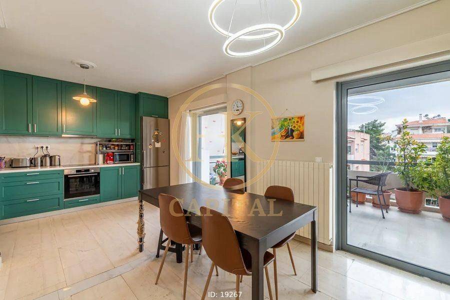 Πωλείται διαμέρισμα 139 τ.μ. στα Μελίσσια, στα όρια Βριλησσίων, σε εξαιρετική κατάσταση, κατασκευής 1989. Βρίσκεται στον 4ο όροφο και είναι πλήρως επιπλωμένο, διαμπερές, φωτεινό και πρόσοψης, με ανοιχτό ορίζοντα και βορειοανατολικό προσανατολισμό. Αποτελείται από 3 υπνοδωμάτια, 2 ευρύχωρα σαλόνια με τζάκι, κουζίνα και 2 μπάνια. Διαθέτει αυτόνομη θέρμανση φυσικού αερίου, κλιματισμό με μονάδες split, ηλιακό θερμοσίφωνα, κουφώματα αλουμινίου με διπλά τζάμια, δάπεδα από πλακάκι και ξύλο, καθώς και πόρτα ασφαλείας. Το ακίνητο διαθέτει μεγάλες βεράντες συνολικής επιφάνειας 30 τ.μ., ασανσέρ και πρόσβαση σε κήπο. Είναι ήσυχο, βαμμένο, πολυτελές, επιτρέπονται κατοικίδια και βρίσκεται εντός σχεδίου, σε οικιστική ζώνη με άσφαλτο. Κατάλληλο και για επαγγελματική στέγη, σε απόσταση έως 200 μέτρα από σχολείο. Ενοικιάζεται πάρκινγκ και αποθήκες στο υπόγειο αυτού του κτιρίου με μικρή χρέωση. Τιμή €410.000 (κωδ. 19267-K) 2100108293;6987221138 HK CAPITAL INVESTMENTS REAL ESTATE IKE