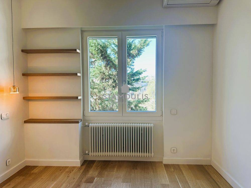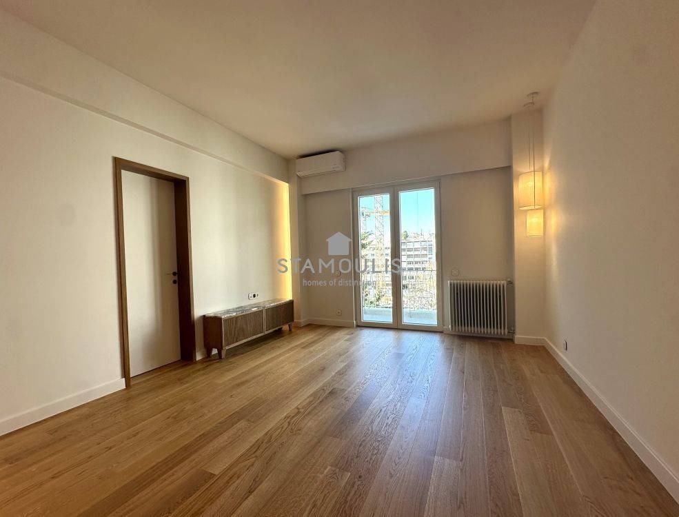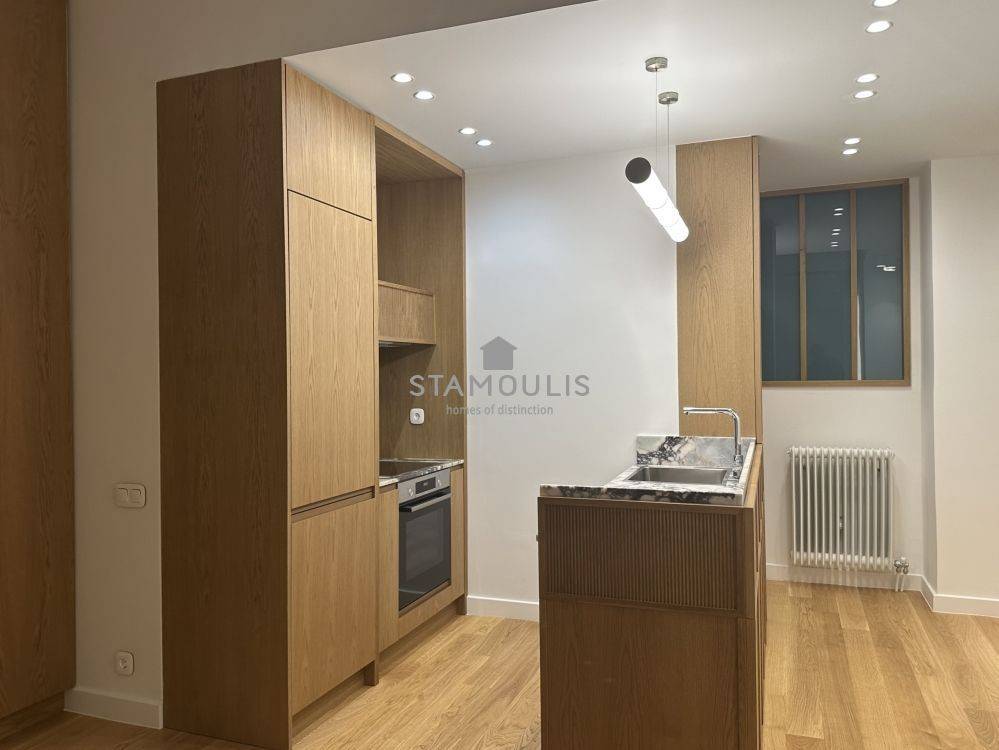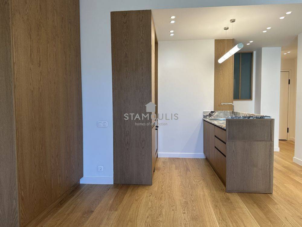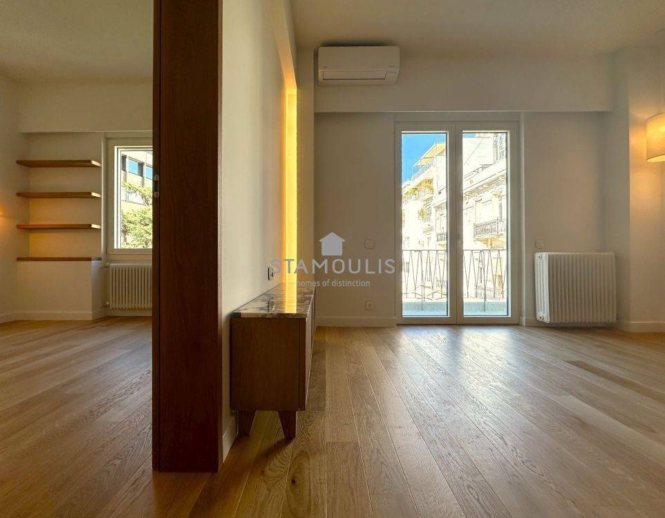Πλήρως και πολυτελώς ανακαινισμένο διαμέρισμα 65 τμ, 2ου ορόφου, σε εξαιρετική πολυκατοικία, με θέα την πλατεία. Διαθέτει 1 Υ/Δ master, walk in closet, μπάνιο, wc, χώρο υποδοχής με open plan κουζίνα με εντοιχισμένες ηλεκτρικές συσκευές, δρύινα δάπεδα, κουφώματα αλουμινίου με διπλά τζάμια και ηλεκτρικά ρολά, πόρτα ασφαλείας, συναγερμό, κλιματισμό.