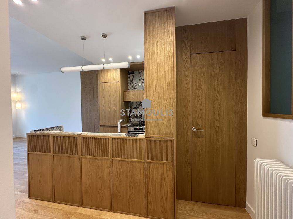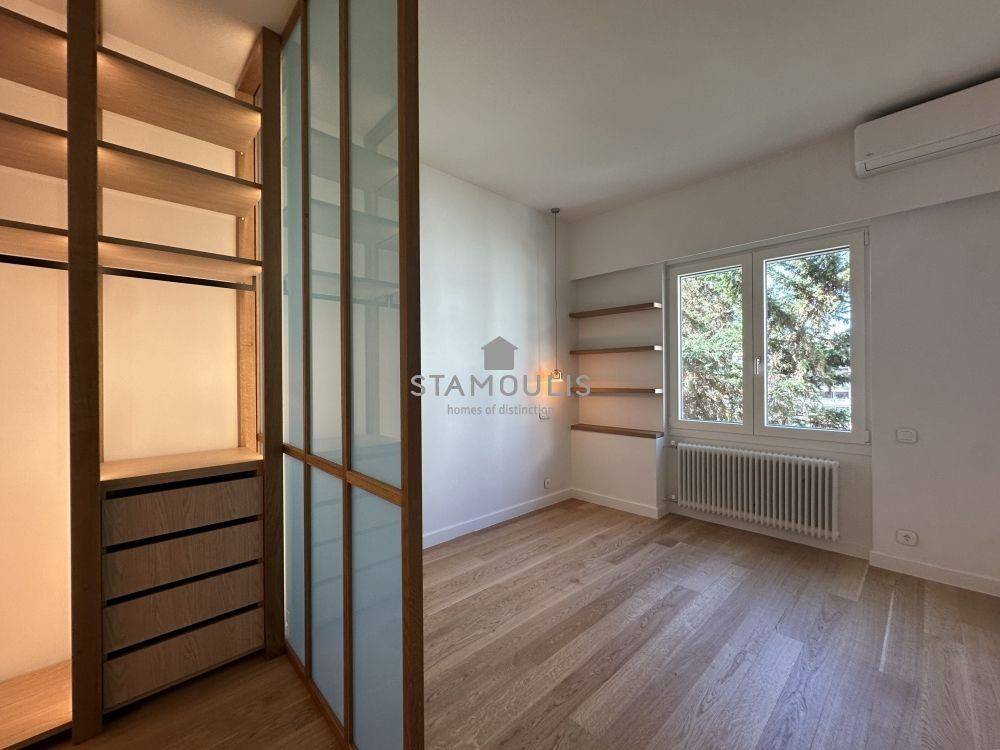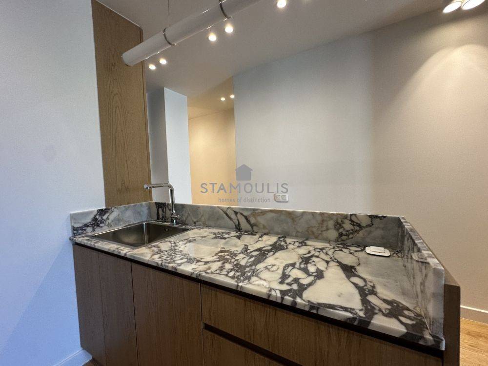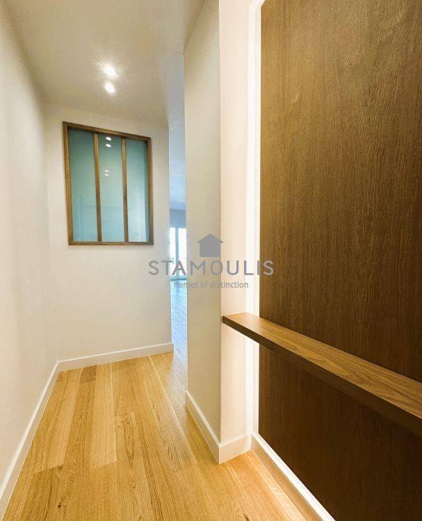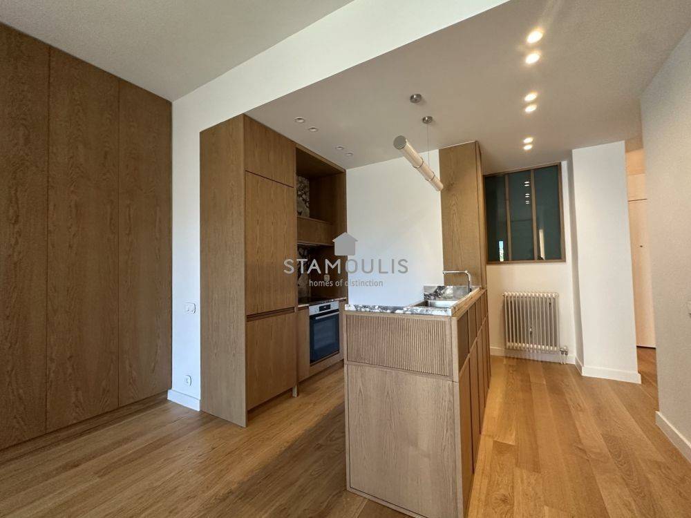 Πλήρως και πολυτελώς ανακαινισμένο διαμέρισμα 65 τμ, 2ου ορόφου, σε εξαιρετική πολυκατοικία, με θέα την πλατεία. Διαθέτει 1 Υ/Δ master, walk in closet, μπάνιο, wc, χώρο υποδοχής με open plan κουζίνα με εντοιχισμένες ηλεκτρικές συσκευές, δρύινα δάπεδα, κουφώματα αλουμινίου με διπλά τζάμια και ηλεκτρικά ρολά, πόρτα ασφαλείας, συναγερμό, κλιματισμό.