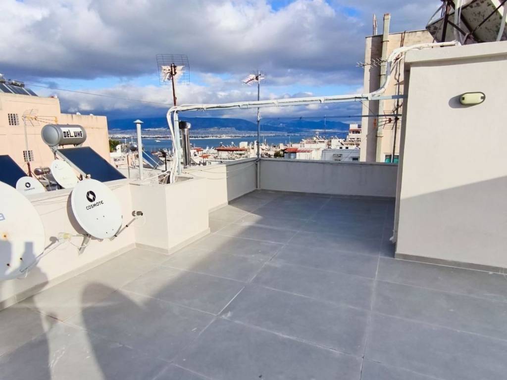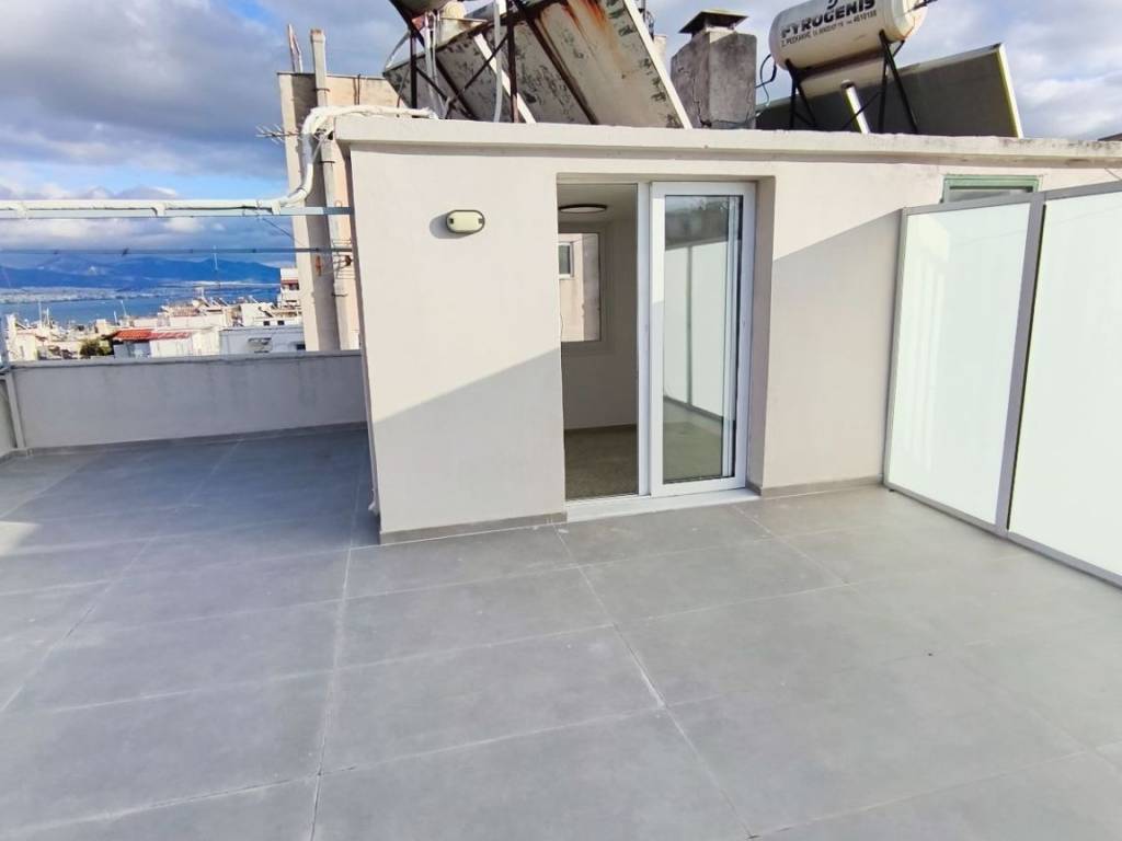 Διαμέρισμα προς ενοικίαση, στην Αποστόλη 36, στον Πειραιά. • 59 τετραγωνικών. • 780 €/μήνα. • Θέα θάλασσα. • 5ου ορόφου & 6ου ορόφου (Ταράτσα). • Ιδιωτικό δώμα & ταράτσα, με πρόσβαση από το κλιμακοστάσιο. • Πλήρως και μόλις ανακαινισμένο. • Μεγάλη Βεράντα (27τ.μ.). • 1 Σαλόνι. • 1 Κουζίνα. • 1 Μπάνιο. • 1 WC. • 2 Υπνοδωμάτια. • Επιπρόσθετη ντουλάπα αποθήκευσης στο χολ. • Κλιματιστικά.
