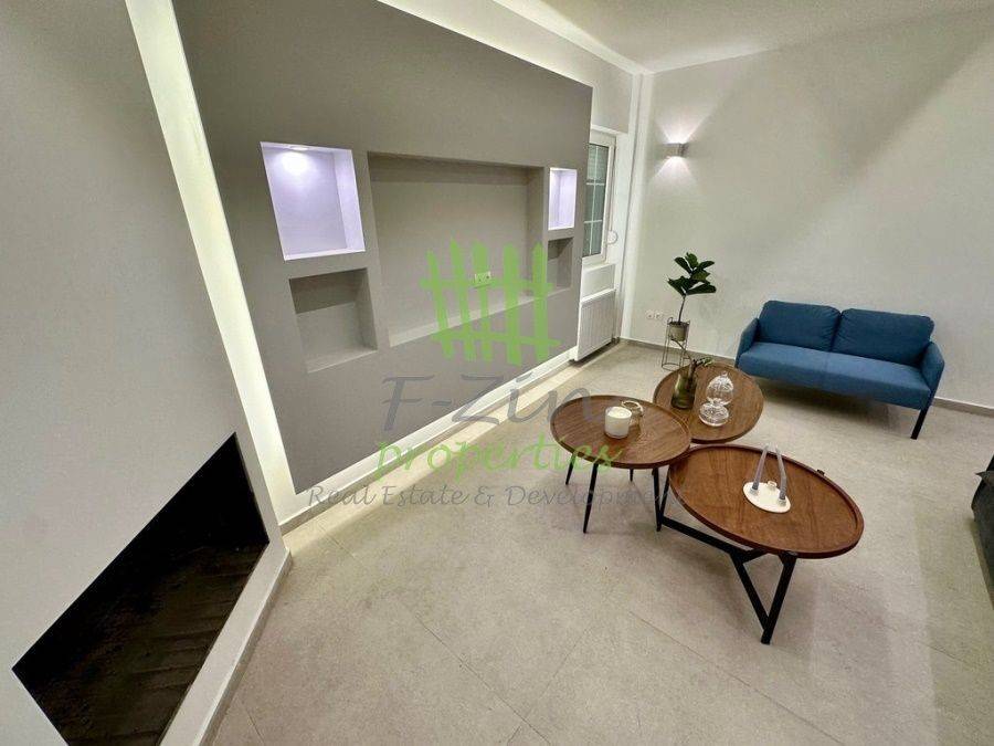 εξαιρετικό πολυτελές ριζικά ανακατασκευασμένο οροφοδιαμέρισμα, με καινούργιες σωληνώσεις, καινούργια ηλεκτρολογική εγκατάσταση, καινούργια πατώματα, σαλόνι με τζάκι και κατασκευές με γυψοσανίδες και ψευδοροφές με led, καινούργια κουζίνα, καινούργιο μπάνιο, βλέπει σε αυλή με πέργκολα, 2 υπνοδωμάτια, φυσικό αέριο με αυτονομία και boiler για ζεστό νερό, σε εξαιρετικό ήσυχο σημείο πλησίον Μετρό, πολύ αξιόλογο, επενδυτικό. Excellent luxurious completely renovated ground floor apartment, with new pipes, new electrical installation, new floors, living room with fireplace and constructions with plasterboard and false ceilings with LED, new kitchen, new bathroom, overlooking a courtyard with pergola, 2 bedrooms, natural gas with autonomy and boiler for hot water, in an excellent quiet location near the Metro, excellent investment.