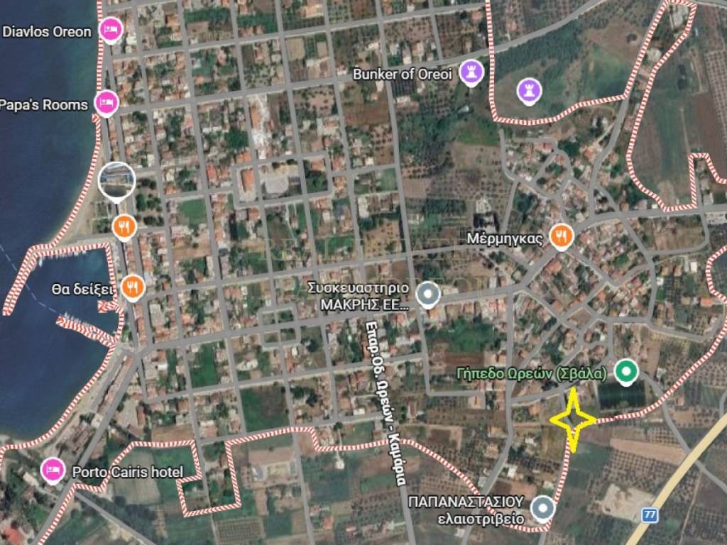 Άρτιο και οικοδομήσιμο οικόπεδο σε υπερυψωμένο σημείο στις Ωρεούς, με όμορφη θέα προς τη θάλασσα και άμεση πρόσβαση σε όλες τις παροχές της περιοχής.