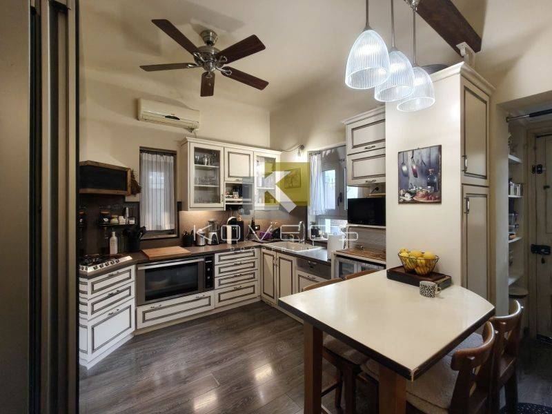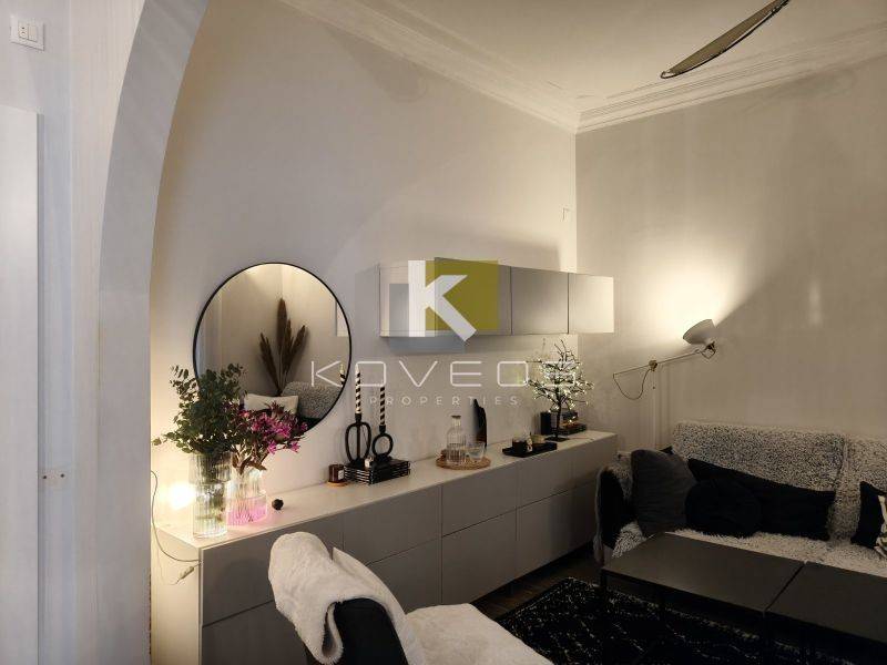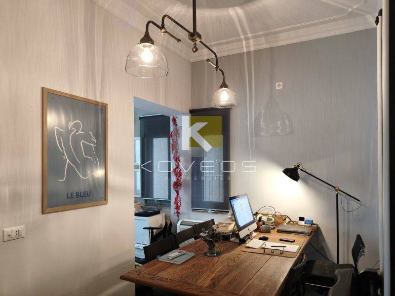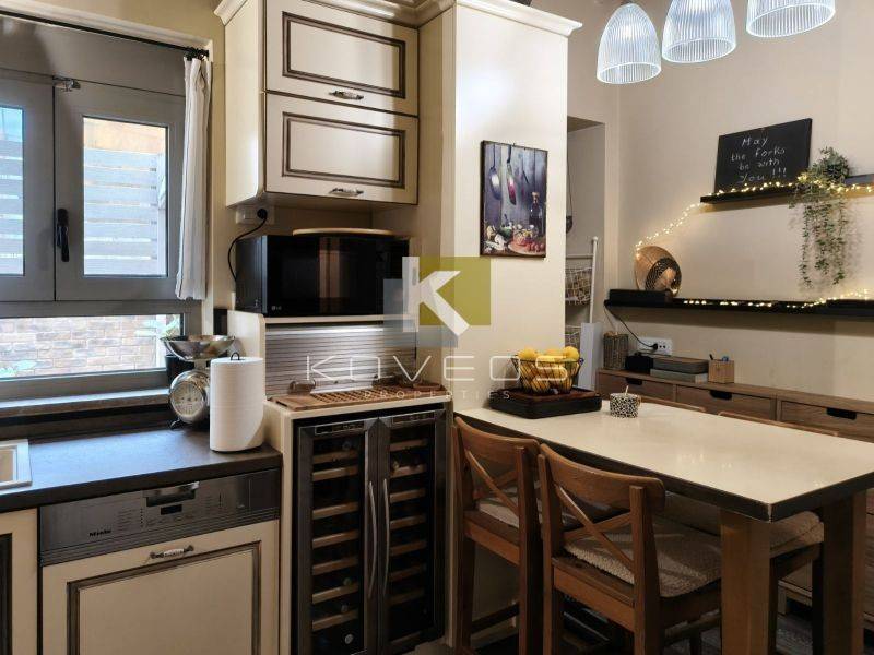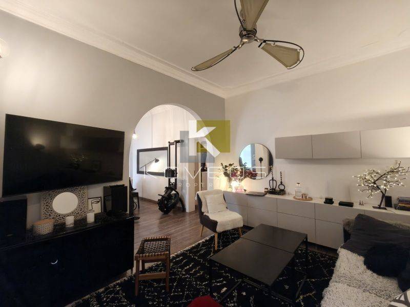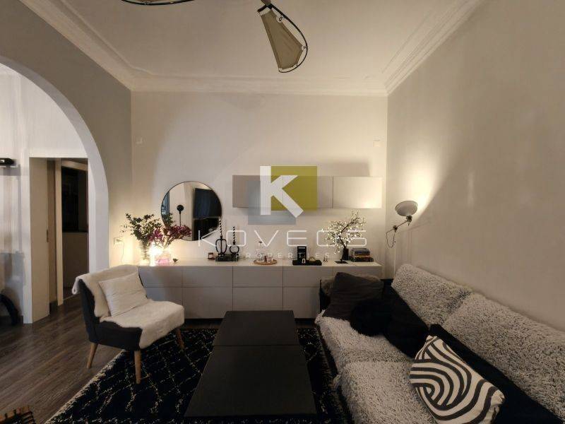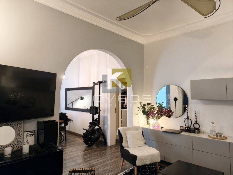 Το διαμέρισμα ανακαινίστηκε πλήρως το 2010 με υλικά υψηλής ποιότητας και ιδιαίτερη έμφαση στη λεπτομέρεια, προσφέροντας ένα αποτέλεσμα υψηλής αισθητικής. Διατηρεί και αναδεικνύει στοιχεία της παλαιάς αρχιτεκτονικής, όπως τα ψηλοτάβανα δωμάτια, τα οποία συνδυάζονται αρμονικά με σύγχρονες γραμμές και λειτουργικές λύσεις. Ο σχεδιασμός του αξιοποιεί στο έπακρο τα τετραγωνικά μέτρα, δημιουργώντας έναν χώρο άνετο, φωτεινό και ιδιαίτερα καλαίσθητο.