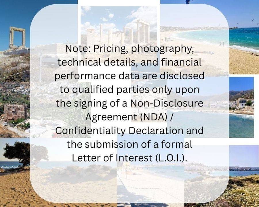 Αποκλειστικό Boutique Συγκρότημα Φιλοξενίας – Νάξος, Κυκλάδες, Ελλάδα Αποκτήστε ένα σπάνιο και πραγματικά μοναδικό boutique συγκρότημα φιλοξενίας στη Νάξο, τοποθετημένο σε ένα προστατευόμενο οικόπεδο 5.000 τ.μ. Το ακίνητο προσφέρει απόλυτη ιδιωτικότητα και ανεμπόδιστη θέα, προκαλώντας μια βαθιά αίσθηση πνευματικής ανάτασης και χαλάρωσης στους επισκέπτες του. Το κτήμα συνδυάζει άψογα την αρχιτεκτονική υπεροχή, τη βιώσιμη κατασκευή επιπέδου `Gold` και έναν ιδιαίτερο χαρακτήρα, χρησιμοποιώντας κορυφαία φυσικά υλικά σε κάθε κατασκευή και λεπτομέρεια. Αυτά τα προσεκτικά επιλεγμένα υλικά διασφαλίζουν ότι η συντήρηση των κτιρίων είναι απλοποιημένη και οικονομικά αποδοτική. Ο εσωτερικός σχεδιασμός και η πισίνα αντικατοπτρίζουν μια ξεχωριστή αισθητική υψηλών προδιαγραφών, προσφέροντας πολυτέλεια και κομψότητα σε κάθε γωνιά. Το συγκρότημα αποτελεί ήδη μια πλήρως λειτουργική επιχείρηση boutique φιλοξενίας με εξαιρετικές κριτικές στο Booking και την Google, αποδεικνύοντας τη δέσμευσή του στην παροχή υπηρεσιών υψηλής ποιότητας και στην άριστη εμπειρία των επισκεπτών. Κύρια Χαρακτηριστικά του Ακινήτου: Προστατευμένη Τοποθεσία: Εγγυημένη ιδιωτικότητα και ανεμπόδιστη θέα. Κανένας άλλος επενδυτής δεν μπορεί να αναπτύξει παρόμοια μονάδα στην περιοχή, τόσο λόγω των νέων περιορισμών δόμησης/χωροταξίας όσο και της μοναδικής μορφολογίας του εδάφους. Αρχιτεκτονική & Υλικά: Χειροποίητη κατασκευή με χρήση φυσικής πέτρας Νάξου, μαρμάρου και άλλων φυσικών υλικών. Διαθέτει πιστοποίηση βιωσιμότητας επιπέδου Gold, μοναδική αρχιτεκτονική ταυτότητα και εσωτερικό σχεδιασμό υψηλής αισθητικής με custom φινιρίσματα. Βραβευμένο έργο. Σουίτες & Εσωτερικοί Χώροι: Κομψά διαμορφωμένες σουίτες με φινιρίσματα υψηλής αισθητικής και ειδικά σχεδιασμένα (bespoke) στοιχεία που αποπνέουν ιδιαίτερο χαρακτήρα και προσωπικότητα. Εγκαταστάσεις: Επαγγελματική κουζίνα, εξωτερική τραπεζαρία και πλήρες kitchen bar, οικολογική θερμαινόμενη πισίνα υψηλής αισθητικής, ιδιωτικές εγκαταστάσεις γυμναστηρίου και ευέλικτοι χώροι εκδηλώσεων κατάλληλοι για retreats, κοινωνικές εκδηλώσεις και εταιρικές συναντήσεις. Φυσικό Κατάστημα: Χώρος λιανικής πώλησης τοπικών προϊόντων (συνδεδεμένος με την ιστοσελίδα μέσω συστήματος e-commerce). Brand & Ψηφιακή Υποδομή: Περιλαμβάνει κατοχυρωμένο εμπορικό σήμα (registered brand), επαγγελματική ιστοσελίδα υψηλής αξίας με ενσωματωμένο σύστημα κρατήσεων, έτοιμη πλατφόρμα e-commerce, προηγμένο SEO και βιβλιοθήκη περιεχομένου σχεδιασμένη για διεθνή απήχηση και προσέλκυση πελατών. Λειτουργία `με το κλειδί στο χέρι` (Turnkey): Άμεση επιχειρησιακή ετοιμότητα με αποδεδειγμένο ιστορικό επιτυχίας και κορυφαίες αξιολογήσεις στον κλάδο της boutique φιλοξενίας. Επενδυτική Προοπτική Αυτή η επένδυση προβλέπεται να προσφέρει απόδοση εισοδήματος που υπερβαίνει το 8%, καθιστώντας την ιδανική επιλογή για διεθνείς επενδυτές που αναζητούν αποκλειστικότητα, ασφάλεια και μακροπρόθεσμη υπεραξία. Πρόκειται για μια απαράμιλλη πρόταση στην αγορά των Κυκλάδων, που συνδυάζει υψηλές αποδόσεις, διακριτικότητα και αρχιτεκτονική ευφυΐα. Το ακίνητο είναι επίσης ιδανικό για μετατροπή σε ιδιωτικές VIP κατοικίες. Σημείωση: Tο φωτογραφικό υλικό, οι τεχνικές λεπτομέρειες και τα δεδομένα οικονομικής απόδοσης γνωστοποιούνται σε ενδιαφερόμενα μέρη μόνο κατόπιν υπογραφής Συμφωνητικού Εμπιστευτικότητας (NDA) και υποβολής επίση