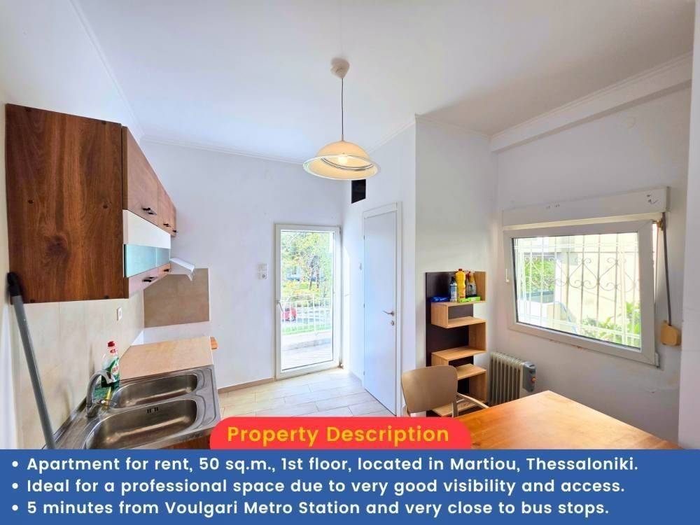 Ενοικιάζεται διαμέρισμα 1ου ορόφου, με πρόσβαση από σκάλα (χωρίς ασανσέρ), σε κεντρικό δρόμο με μεγάλη διέλευση και εξαιρετική προβολή. Βρίσκεται μόλις 5 λεπτά με τα πόδια από τη στάση μετρό Βούλγαρη και από στάσεις ΟΑΣΘ, αποτελώντας ιδανική επιλογή για επαγγελματίες.