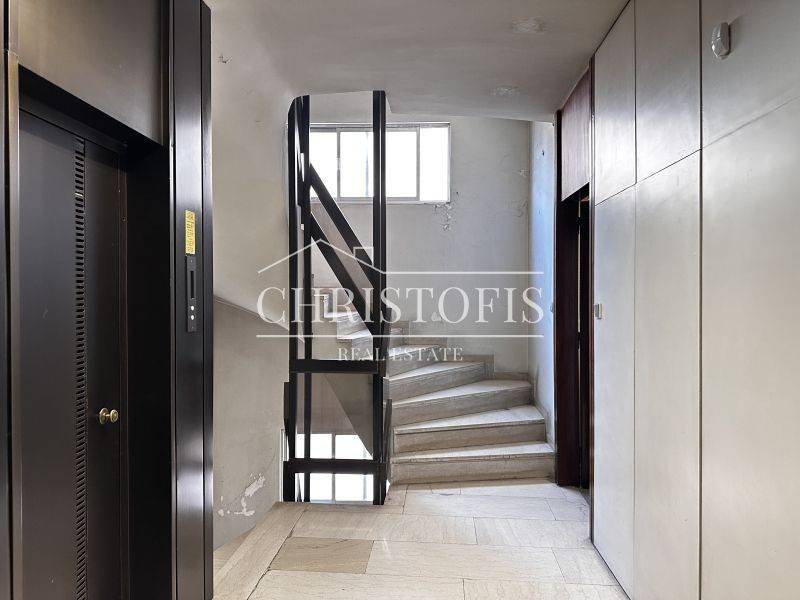 A single store of 186.86 sq m (ground floor) with a loft of 53 sq m is formed on the Ground Floor, as well as a 236 sq m First Basement. Total store area of ​​476.86 sq m, offering flexibility of uses and configuration. The 3 levels of the store as well as the 2nd Basement, as well as the 1st floor are connected by a professional elevator, while the superstructure of the building is served by 2 conventional elevators.