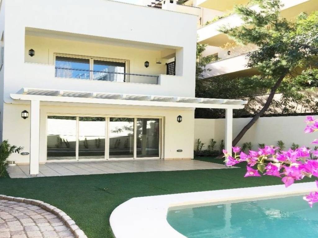 Ανακαινισμένη Μονοκατοικία με Πισίνα και ιδιωτικό κήπο , 4 επιπέδων με ασανσέρ. Διαθέτει 4 υπνοδωμάτια (με μπάνια) στον 1ο όροφο , 2 χώρουσ (δωμάτια) στον 2ο όροφο (σοφίτα) για γραφείο ή playroom και δωμάτιο υπηρεσίας στο υπόγειο. Ιδιωτικό γκαράζ 2 θέσεων . Με ασφάλεια. Τεχνική Υποστήριξη . Γυμνστήριο.Παιδική χαρά.