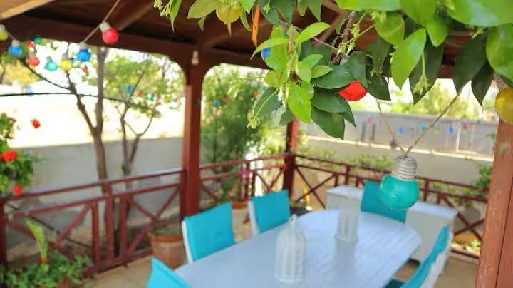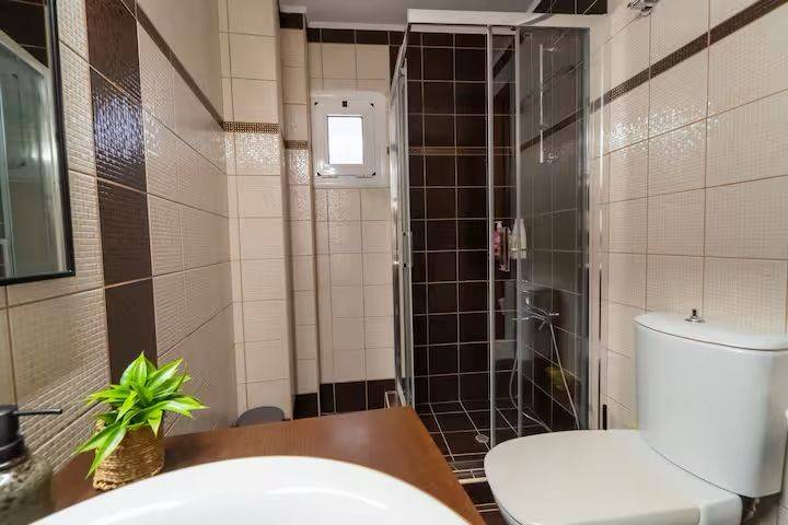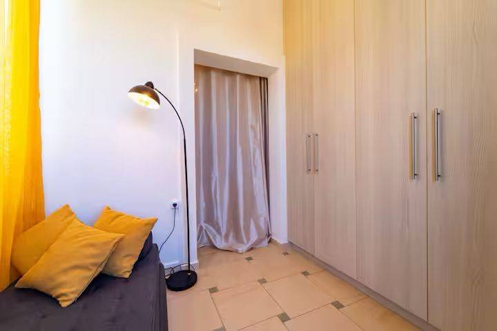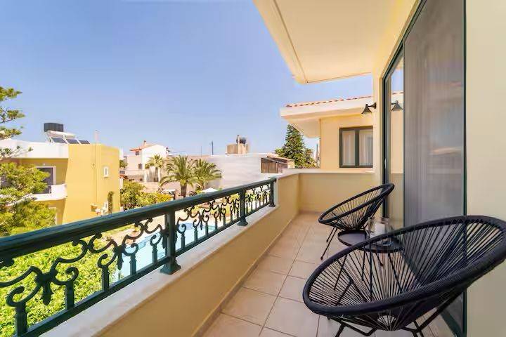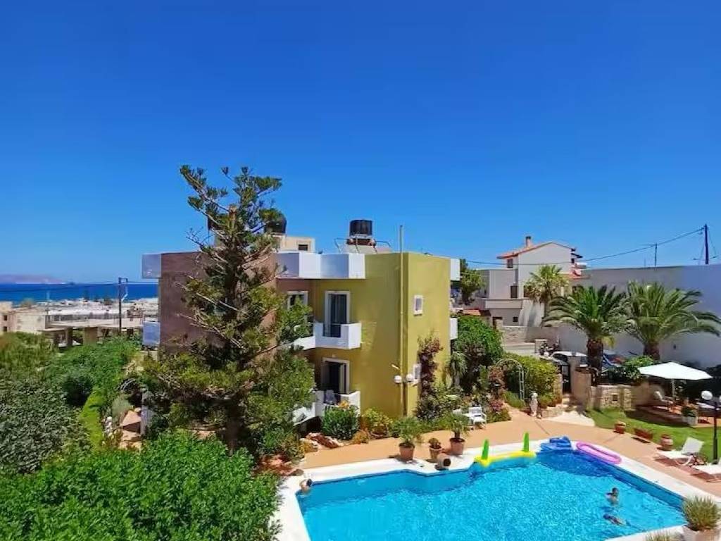 Η μεζονέτα ανήκει σε ένα συγκρότημα TELMARIE το οποίο συμπεριλαμβάνει 8 διαμερίσματα και 2 μεζονέτες. Η μεζονέτα προσφέρει μια πλήρως εξοπλισμένη κουζίνα με φούρνο, φούρνο μικροκυμάτων, κεραμική εστία, ψυγείο και πλυντήριο πιάτων. Το ισόγειο είναι ένας ενιαίος χώρος με την κουζίνα, την τραπεζαρία και το καθιστικό. Στο πάνω επίπεδο υπάρχουν ένα δίχωρο υπνοδωμάτιο με ένα διπλό κρεβάτι και ένα κρεβάτι-καναπέ, καθώς επίσης ένα δεύτερο υπνοδωμάτιο με μία κουκέτα. Σε κάθε όροφο υπάρχει ένα WC με ντουζιέρα και μπαλκόνι με θέα στην πισίνα/κήπο και στη θάλλασσα. Στον κοινόχρηστο χώρο της πισίνας υπάρχουν ξαπλώστρες, αιώρες, μία μεγάλη τραπεζαρία και άλλα καθίσματα. Επίσης, διατίθενται δύο εξωτερικές ντουζιέρες και μπάρμπεκιου. Κατά τους θερινούς μήνες τα διαμερίσματα του συγκροτήματος ενοικιάζονται μακροχρόνια ή βραχυχρόνια .