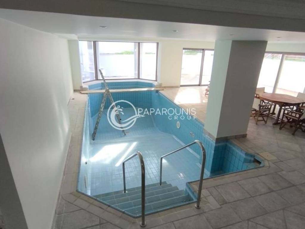 Κατεβαίνοντας στο πρώτο υπόγειο, ο χώρος μεταμορφώνεται σε απόλυτο καταφύγιο ευεξίας. Δύο master υπνοδωμάτια υπηρεσίας, ένα χαμάμ που μοιάζει να γεννήθηκε από ανατολίτικο όνειρο, ένα σαλόνι με bar όπου ο χρόνος κυλά πιο αργά, αποδυτήρια και τέσσερις αποθήκες συνθέτουν έναν κόσμο όπου η ηρεμία αποκτά υλική μορφή. Στο κέντρο αυτού του επιπέδου, η μεγάλη, θερμαινόμενη εσωτερική πισίνα απλώνει τον καθρέφτη της και καθ invites την αίσθηση της απόλυτης χαλάρωσης, σαν να ταξιδεύει κανείς στο βάθος της σιωπής.