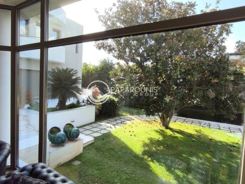 Κι έξω, ο μεγάλος, περιποιημένος κήπος, ζωντανός και γενναιόδωρος, αγκαλιάζει τη βίλα σαν φυσική της προέκταση. Οι βεράντες απλώνονται σαν σκηνές θερινής ζωής, γεμάτες φως, πράσινο και ανεμπόδιστη αρμονία.