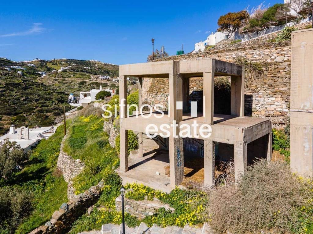 Πωλείται ημιτελές διώροφο κτήριο εντός οικισμού στο Κάστρο Σίφνου (Κυκλάδες). Το κτήριο έχει συνολικό εμβαδόν 73,34 τ.μ. (39,24 τ.μ. ισόγειο και 34,10 τ.μ. όροφος) και χρήζει αποπεράτωσης. Σημαντικό πλεονέκτημα αποτελεί το γεγονός ότι η απαραίτητη οικοδομική άδεια βρίσκεται σε ισχύ, επιτρέποντας την άμεση έναρξη των εργασιών χωρίς χρονοβόρες διαδικασίες. Η πρόσβαση είναι ιδιαίτερα εύκολη, με δυνατότητα πρόσβασης με αυτοκίνητο, μεγάλα φορτηγά και μηχανήματα, χαρακτηριστικό που ελαχιστοποιεί το κατασκευαστικό κόστος. Τα δίκτυα ηλεκτρισμού, ύδρευσης, αποχέτευσης και τηλεφωνίας διέρχονται δίπλα από την ιδιοκτησία, διευκολύνοντας άμεσες συνδέσεις. Το ακίνητο, με νοτιοανατολικό προσανατολισμό, απολαμβάνει θέα στη θάλασσα, στα γύρω νησιά και στους λόφους. Η τοποθεσία του είναι προνομιακή. Βρίσκεται δίπλα στην πλατεία και στην αρχή του πεζόδρομου του Κάστρου, μόλις 20 μ. από τη στάση λεωφορείου, 300 μ. από την παραλία Σεράλια και περίπου 300 μ. από τον δημοτικό χώρο στάθμευσης. Στη γύρω περιοχή υπάρχουν καταστήματα, καφέ, μπαρ, ταβέρνες και εστιατόρια υψηλής γαστρονομίας. Το κτήριο διαθέτει άδεια για ΚΑΤΑΣΤΗΜΑ, με δυνατότητα αλλαγής χρήσης σε κατοικία. Υπάρχει επίσης δυνατότητα να αγοραστεί μαζί με το ακίνητο ID 2336 (ακριβώς δίπλα), όπου θα μπορούσε να κατασκευαστεί διώροφη κατοικία 102 τ.μ., γεγονός που προσθέτει μια ιδιαίτερα ενδιαφέρουσα προοπτική αξιοποίησης, είτε για ιδιωτική χρήση είτε για τουριστική εκμετάλλευση.
