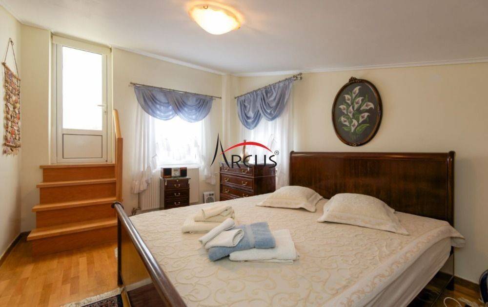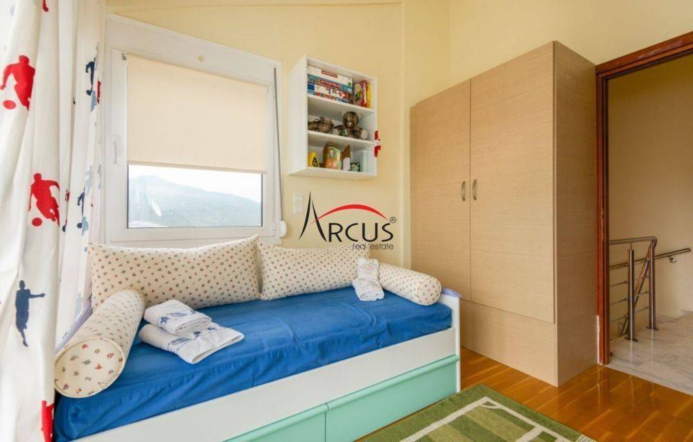 Πανόραμα: Σε ιδιαίτερα προσεγμένο συγκρότημα τεσσάρων μονοκατοικιών με συνολική επιφάνεια οικοπέδου στα 4.600m πωλείται μια εξαιρετική μονοκατοικία των 302 τ.μ πολυτελούς κατασκευής 2007 σε 3 επίπεδα και αποτελείται απο: αυτόνομο ισόγειο των 120 τ.μ με ευρύχωρη σαλοκουζίνα και μεγάλο τζάκι, 2 υπνοδωμάτια, βεστιάριο, μπάνιο και μια αποθήκη. Ό πρώτος όροφος διαθέτει ένα πολύ μεγάλο και άνετο σαλόνι με τζάκι, χωριστή κουζίνα, δύο τραπεζαρίες και ένα wc. 2ος και τελευταίο όροφος διαθέτει 3 υπνοδωμάτια, ένα μπάνιο και πλυσταριό. Σε όλους τους ορόφους έχει άνετες βεράντες με καταπληκτική θέα. Διαθέτει 4 θέσεις πάρκινγκ και 500m αποκλειστικής χρήσης κήπου με γκαζόν, δέντρα και BBQ που δίνουν μια ιδιαίτερη ομορφιά. Υπάρχει δυνατότητα μετατροπής του ισογείου ορόφου για να επικοινωνεί με εσωτερική σκάλα με τους υπόλοιπους ορόφους όπως και ειδικό χώρο για τοποθέτηση εσωτερικού ανελκυστήρα. Η θέρμανση της είναι ατομική πετρελαίου. Κωδικός Ακινήτου: 111963 Τιμή:565000€ **Για την υπόδειξη του ακινήτου είναι απαραίτητη η προσκόμιση αστυνομικής ταυτότητας ή ΑΦΜ** Arcus Real Estate Email : info@arcusrealestate.gr Ανατολική Θεσσαλονίκη : Λεωφ. Κων/νου Καραμανλή 71 & Ψαρών 21 (2ος όροφος) Τηλέφωνο Γραφείου : 2310 901060 Κέντρο Θεσσαλονίκης : Ερμού 75 (2ος όροφος) Τηλέφωνο Γραφείου : 2310 251060 Δυτική Θεσσαλονίκη : Νεάπολη Ελευθέριου Βενιζέλου 88 (1ος όροφος) Τηλέφωνο Γραφείου : 2310 621070 Καλαμαριά : Ιωάννη Τσαλουχίδη 54 (1ος όροφος) Τηλέφωνο Γραφείου : 2310 901060 * Ώρες επικοινωνίας: 9:00 - 21:00 *