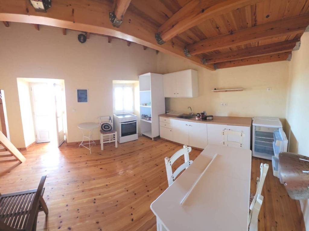 Αυτοτελές παραδοσιακό σπίτι μέσα στο ήσυχο χωριό Κληματιά στη Βόρεια Κέρκυρα, πλήρως ανακαινισμένο και λειτουργικό. Το ακίνητο είναι διαμορφωμένο σε τρία επίπεδα: Πρώτο επίπεδο (ισόγειο / κατώι): 39,14 τ.μ., το οποίο λειτουργεί ως υπνοδωμάτιο και περιλαμβάνει ανακαινισμένο μπάνιο, καθώς και ξεχωριστό χώρο αποθήκευσης για κλινοσκεπάσματα και άλλα αντικείμενα. Στο επίπεδο αυτό βρίσκεται και η κύρια είσοδος. Διατηρεί ως εξαιρετικό διακοσμητικό στοιχείο μέρος του φυσικού βράχου πάνω στον οποίον ανεγέρθηκε. Δεύτερο επίπεδο: 24,27 τ.μ., το οποίο αποτελείται από καθιστικό και κουζίνα. Στο ίδιο επίπεδο υπάρχει επίσης μεγάλη στεγασμένη βεράντα/μπαλκόνι εμβαδού 14,86 τ.μ. Τρίτο επίπεδο: ξύλινο πατάρι (8,22 τ.μ.), κατάλληλο είτε για αποθήκευση είτε ως επιπλέον χώρος ύπνου για φιλοξενούμενους. Το ακίνητο είναι πλήρως ανακαινισμένο σε όλα τα δομικά του στοιχεία, όπως δάπεδα, στέγη, μπάνιο, ξυλεία κ.λπ. Διατίθεται με βασικές ηλεκτρικές συσκευές και επίπλωση, όπως αποτυπώνονται στις φωτογραφίες. Η επικοινωνία μεταξύ των επιπέδων γίνεται με εσωτερικές σκάλες. Ιδιαίτερη μνεία αξίζει στη μεγάλη και όμορφη βεράντα (14,86 τ.μ.), η οποία προσφέρει ανοιχτή και ευχάριστη θέα προς την κερκυραϊκή ύπαιθρο, με οπτική επαφή προς τα Διαπόντια νησιά και τη θάλασσα. Οι πόρτες και τα παράθυρα είναι ξύλινα (όχι αλουμινίου), ανακαινισμένα και εναρμονισμένα με το παραδοσιακό στυλ. Το ακίνητο δεν διαθέτει σύστημα θέρμανσης ή ψύξης. Παραμένει δροσερό κατά τους καλοκαιρινούς μήνες, ενώ τον χειμώνα διατηρεί τη θερμοκρασία του λόγω της πέτρινης τοιχοποιίας, ωστόσο συνιστάται η προσθήκη κάποιου μέσου θέρμανσης.