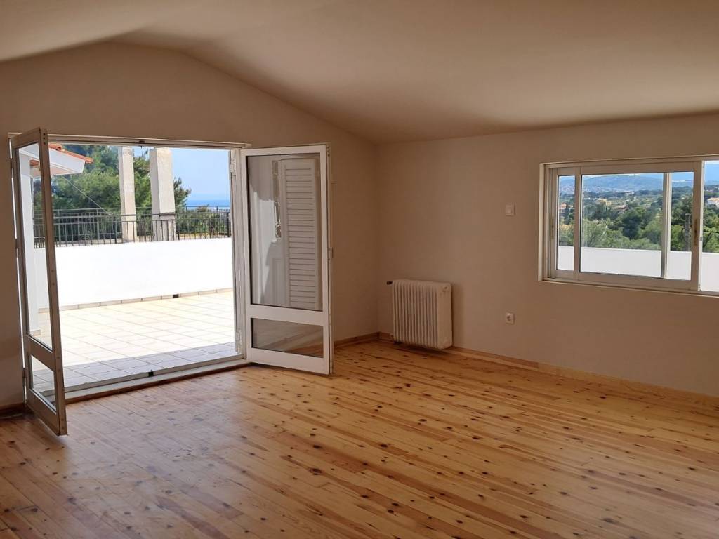 Διώροφη μονοκατοικία 160 τ.μ. σε οικόπεδο 550 τ.μ., σε ήσυχη και προνομιακή περιοχή. Στον πρώτο όροφο βρίσκονται δύο άνετα υπνοδωμάτια, ευρύχωρο σαλόνι, γραφείο, κουζίνα, πλήρως ανακαινισμένο μπάνιο και ξεχωριστός χώρος studio/playroom. Στον δεύτερο όροφο υπάρχει σοφίτα 35 τ.μ., ιδανική για χρήση ως master bedroom, yoga shala ή αίθουσα χορού, καθώς και μεγάλο μπάνιο και χώρος πλυντηρίου. Στο ισόγειο υπάρχει αποθήκη. Και οι δύο όροφοι διαθέτουν μεγάλες βεράντες με θέα στο δάσος και στη θάλασσα. Το ακίνητο έχει θέα στη θάλασσα και βρίσκεται μόλις 10 λεπτά με το αυτοκίνητο από την πλησιέστερη παραλία. Τιμή συζητήσιμη.