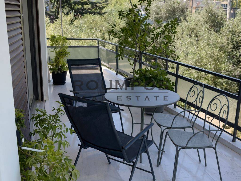 Σας παρουσιάζουμε ενα γωνιακό διαμέρισμα 1ου ορόφου, συνολικής επιφάνειας 102 τ.μ., στην περιοχή της Νέας Φιλοθέης Αμαρουσίου. Το ακίνητο χαρακτηρίζεται από την περιμετρική πρόσβαση σε μπαλκόνι, γεγονός που εξασφαλίζει άπλετο φυσικό φωτισμό σε όλους τους χώρους, καθώς και ευχάριστη θέα σε πράσινο και πάρκο. Κατά την είσοδο στο διαμέρισμα συναντάμε ευρύχωρο και φωτεινό σαλόνι, με μεγάλα ανοίγματα και άμεση πρόσβαση στο μπαλκόνι. Ο χώρος συμπληρώνεται από ένα WC με ντουζιέρα, καθώς και από μια μεγάλη και λειτουργική κουζίνα. Στη συνέχεια, διάδρομος οδηγεί στους ιδιωτικούς χώρους του ακινήτου, όπου βρίσκονται δύο άνετα υπνοδωμάτια. Και τα δύο διαθέτουν πρόσβαση στο μπαλκόνι, προσφέροντας φυσικό φως και αερισμό, καθώς και μεγάλες εντοιχισμένες ντουλάπες. Τα υπνοδωμάτια εξυπηρετούνται από ένα ευρύχωρο, κοινόχρηστο μπάνιο. Αποτελεί ιδανική επιλογή για όσους αναζητούν ένα φωτεινό και λειτουργικό ακίνητο σε μια ήσυχη και καταπράσινη περιοχή. Σημειώνεται ότι το διαμέρισμα δεν διατίθεται επιπλωμένο. Χαρακτηριστικά: Αυτόνομη Θέρμανση, φυσικό αέριο, διπλά τζάμια, τέντες, σίτες, AC, κουφώματα αλουμινίου, αποθήκη. Αποστάσεις: Super Market: 650 μέτρα. Νοσοκομείο Υγεία: 500 μέτρα. Αττική Οδός: 2,2 χιλιόμετρα. Roumpos Real Estate.