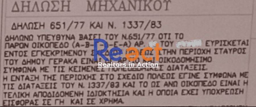 ΓΕΡΑΚΑΣ, Σταυρός - Οικόπεδο 375τμ, ΣΔ 0.8, ΣΚ 60%, οικιστική ζώνη, εκτός σχεδίου. ## Για Α Μ Ε Σ Η ΕΠΙΚΟΙΝΩΝΙΑ Κ Α Λ Ε Σ Τ Ε ΠΡΩΤΑ το 6942444316 ## For D I R E C T CONTACT PLEASE C A L L FIRST at 6942444316 Τιμή €320.000 (κωδ. 23462) 210 6033923, +30 6946468593 REACT Real Estate