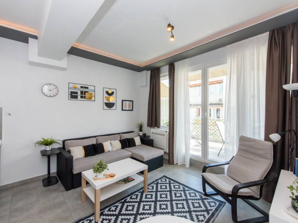 6ος όροφος με θέα & μεγάλη βεράντα | Πλήρως εξοπλισμένο | 250μ από Μετρό Ενοικιάζεται πλήρως επιπλωμένο και εξοπλισμένο διαμέρισμα 41 τ.μ. στην οδό Στρατηγού Μπραντούνα 5, σε εξαιρετική κεντρική τοποθεσία. Βρίσκεται στον 6ο όροφο, με ανοιχτωσιά και όμορφη θέα προσφέροντας φωτεινό και ευχάριστο περιβάλλον. Το διαμέρισμα αποτελείται από υπνοδωμάτιο με queen-size κρεβάτι και μεγάλη συρόμενη ντουλάπα, καθώς και σαλόνι με καναπέ-κρεβάτι. Είναι ιδανικό για φοιτητές, μεμονωμένα άτομα αλλά και νεαρό ζευγάρι. Η κουζίνα είναι πλήρως εξοπλισμένη με ηλεκτρικές συσκευές (ψυγείο, φούρνος, εστίες, φούρνος μικροκυμάτων, καφετιέρα, Nespresso μηχανή, βραστήρας, τοστιέρα) καθώς και όλα τα απαραίτητα είδη κουζίνας (πιάτα, ποτήρια, κατσαρόλες, μαγειρικά σκεύη).