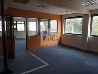 σε κτίριο προβολής, διαμπερής αίθουσα γραφείων Ά ορόφου, αποτελούμενη απο ωραίο χώρο υποδοχής, εξι κλειστά γραφεία και μεγάλο κεντρικό open space χώρο,3 wc και kitchenette, κλιματισμός, ψευδοροφές, ποιοτικά χωρίσματα με διπλά κρύσταλλα και εσωτερικές περσίδες, δομημένη καλωδίωση, στόρια,