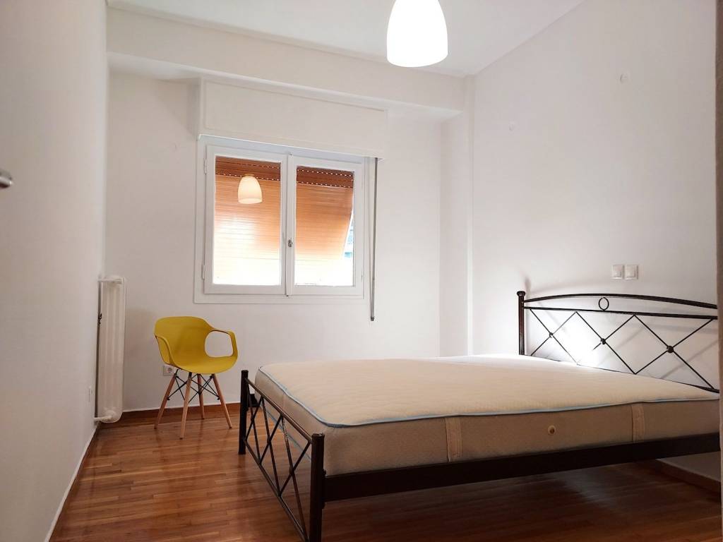 Διαμέρισμα 2ου ορόφου σε καλά συντηρημένη πολυκατοικία (θυροτηλεόραση, πόρτα ασφαλείας με μπουτόν, ανακαινισμένο ασανσέρ, οπτική ίνα εντός της πολυκατοικίας) του 1969. Το διαμέρισμα αποτελείται από ένα κύριο υπνοδωμάτιο, δύο μεγάλα δωμάτια που χωρίζονται από συρόμενη πόρτα και μπορούν να γίνουν σαλόνι+τραπεζαρία, ή σαλόνι+δεύτερο υπνοδωμάτιο, ένα μεγάλο χωλ, κουζίνα και μπάνιο. Και τα τρία δωμάτια έχουν δυτικό προσανατολισμό και είναι πολύ φωτεινά, και τα δύο έχουν πρόσβαση σε μπαλκόνι. Το διαμέρισμα είναι φρεσκοβαμμένο, με καινούριο ηλεκτρικο πίνακα, κουφώματα pvc με διπλά τζάμια στο μπάνιο και την κουζίνα, και ημί-ανακαινισμένο μπάνιο (καινούρια είδη υγιεινής). Μπορεί να διατεθεί ημί-επιπλωμένο όπως φαίνεται στις φωτογραφίες, και πλήρως εξοπλισμένο - πλυντήριο ρούχων, κουζίνα+απορροφητήρας, ψυγείο, καινούργιος ηλεκτρικός θερμοσίφωνας και ένα κλιματιστικό νέας εχνολογίας (προαιρετικά). Διαθέτει κεντρική θέρμανση με φυσικό αέριο, είναι πολύ ζεστό το χειμώνα και έχει χαμηλά κοινόχρηστα. Η περιοχή είναι πολύ ήσυχη, πολύ κοντά σε λεωφορεία, τρόλεϊ και στη γραμμή 1 (τρένο), όπως και στην έξοδο της εθνικής οδού.