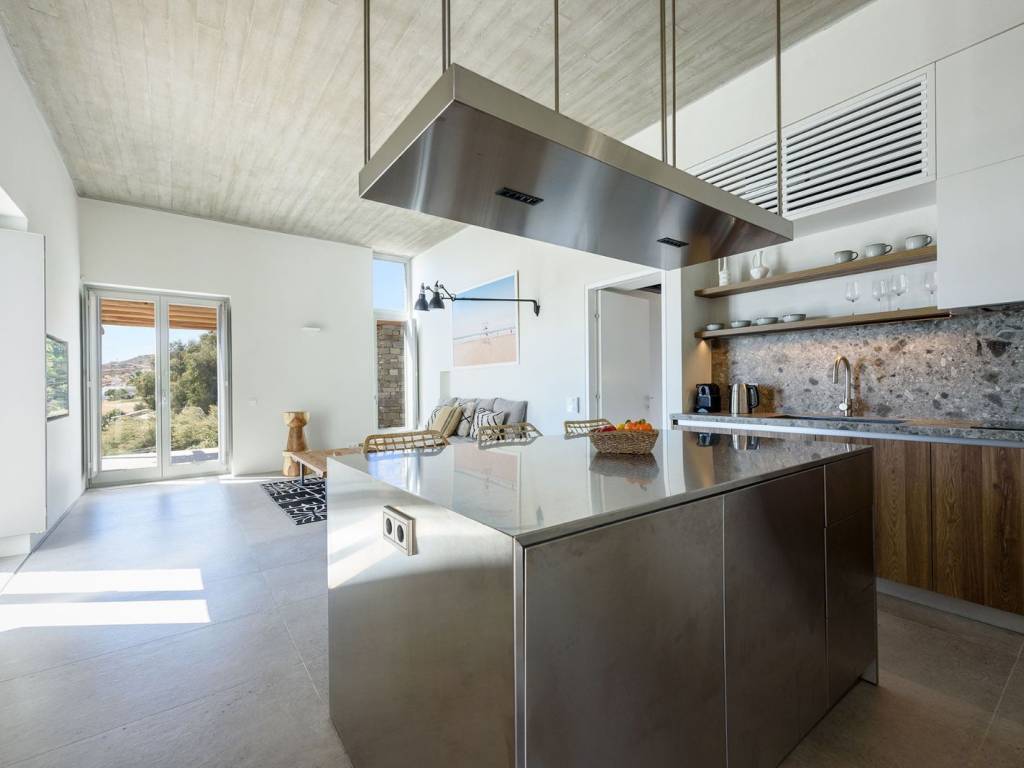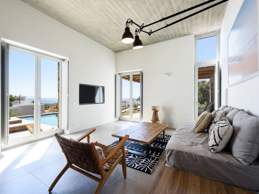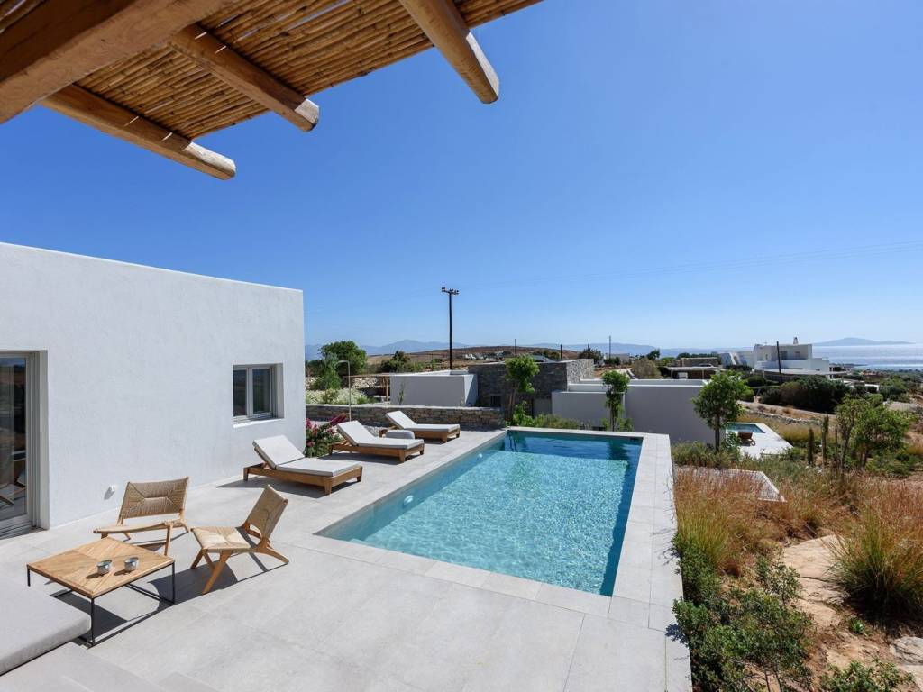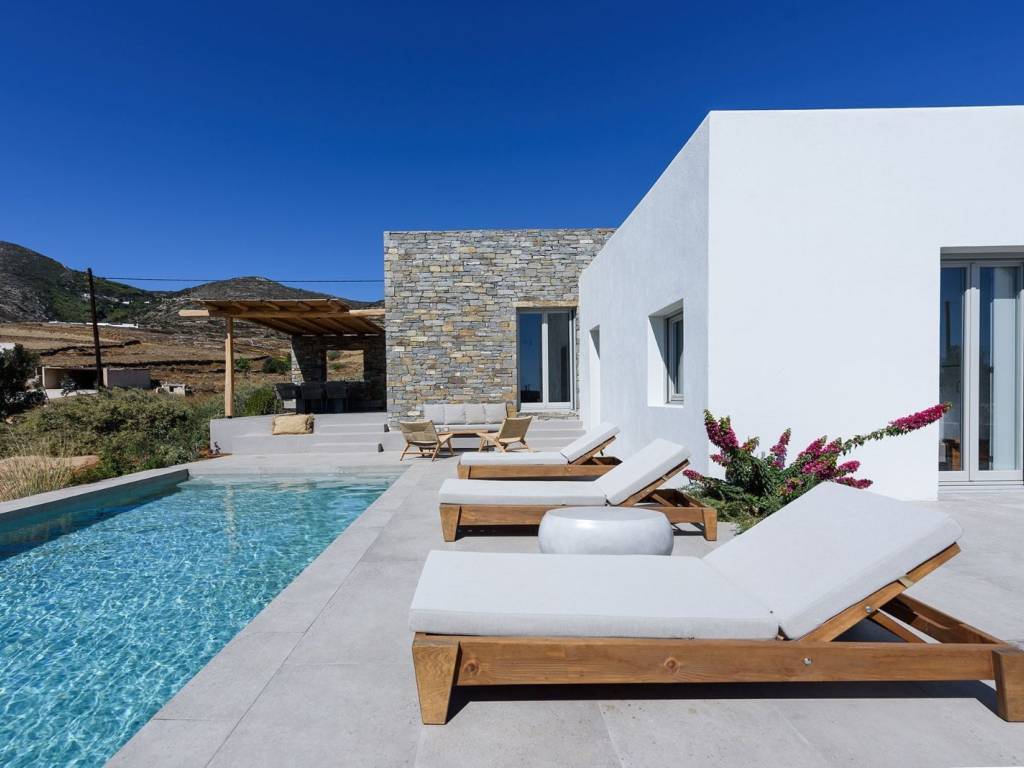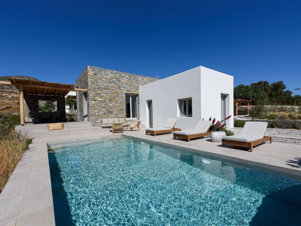 Tρεις πολυτελείς βίλες, νεόδμητες του 2021, που προσφέρει 91 τ.μ. κομψού χώρου διαμονής η κάθε μία, σε ένα αυτόνομο οικόπεδο 4.231 τ.μ., με άλλες δύο βίλες σε κοντινή απόσταση και ιδιωτική πισίνα. Η κάθε μία διαθέτει δύο master υπνοδωμάτια, ένα ευρύχωρο σαλόνι με ανοιχτή κουζίνα και στοιχεία σύγχρονου σχεδιασμού που δένουν αρμονικά με το τοπίο. Η κάθε βίλα προσφέρει ένα ιδιωτικό και γαλήνιο περιβάλλον, ιδανικό για χαλαρωτικές αποδράσεις στο νησί, με άφθονο εξωτερικό χώρο για διασκέδαση και ιδιωτικότητα. Είναι με νότιο προσανατολισμό και εύκολη πρόσβαση από και προς όλα τα κύρια σημεία του νησιού, ενώ έχει θέα προς τη Νάξο και το Αιγαίο Πέλαγος. Οι ηλιόλουστοι εξωτερικοί χώροι προσφέρουν μια γωνιά τραπεζαρίας με πέργκολα, καθώς και έναν χώρο για καφέ. Η πισίνα διαστάσεων 3,7μ. x 8μ. αποτελεί το αποκορύφωμα του διαμερίσματος, περιτριγυρισμένη από χαμηλό κήπο και διακοσμημένη με στοιχεία boho-chic πάνω σε γκρι τσιμεντένιες επιφάνειες. Η σύγχρονη αίσθηση τόσο στο εσωτερικό όσο και στο εξωτερικό αποτελεί την βασική ατμόσφαιρα που θα δείτε. Μια ενιαία, πλήρως εξοπλισμένη κουζίνα με μεγάλη νησίδα από ανοξείδωτο ατσάλι, καθώς εισέρχεστε στο σ[πίτι, βρίσκεται δίπλα στο σαλόνι. Διακοσμημένη με μεγάλα μαξιλάρια σε αποχρώσεις της άμμου, σας καλωσορίζει για ένα διάλειμμα στο εσωτερικό, με θέα μέσω των μεγάλων ανοιγμάτων στη βεράντα της πισίνας και το Αιγαίο. Μπορούν να διαμείνουν άνετα τέσσερις επισκέπτες,σε ένα υπνοδωμάτιο με διπλό κρεβάτι και ιδιωτικό μπάνιο και σε ένα άλλο υπνοδωμάτιο με διπλό κρεβάτι και ξεχωριστό μπάνιο. Ο καναπές-κρεβάτι στο σαλόνι μπορεί να φιλοξενήσει έναν πέμπτο επισκέπτη, αν χρειαστεί, Οι οροφές σε στυλ τσιμέντου, τα φρέσκα και μοντέρνα υλικά που σκιάζονται από τα ξύλινα παραθυρόφυλλα προσφέρουν μια αίσθηση άνεσης. Επιλέξτε μια πόρτα που σας οδηγεί στους εξωτερικούς χώρους για συναντήσεις στις εξαιρετικά άνετες ξαπλώστρες και τα σκιασμένα τραπέζια φαγητού.