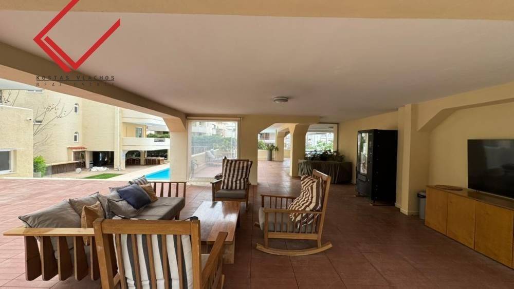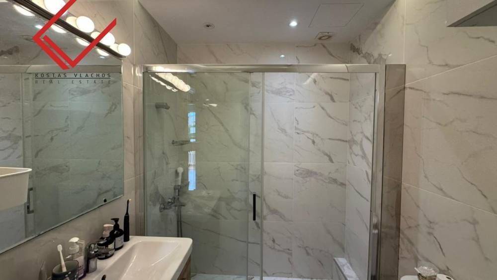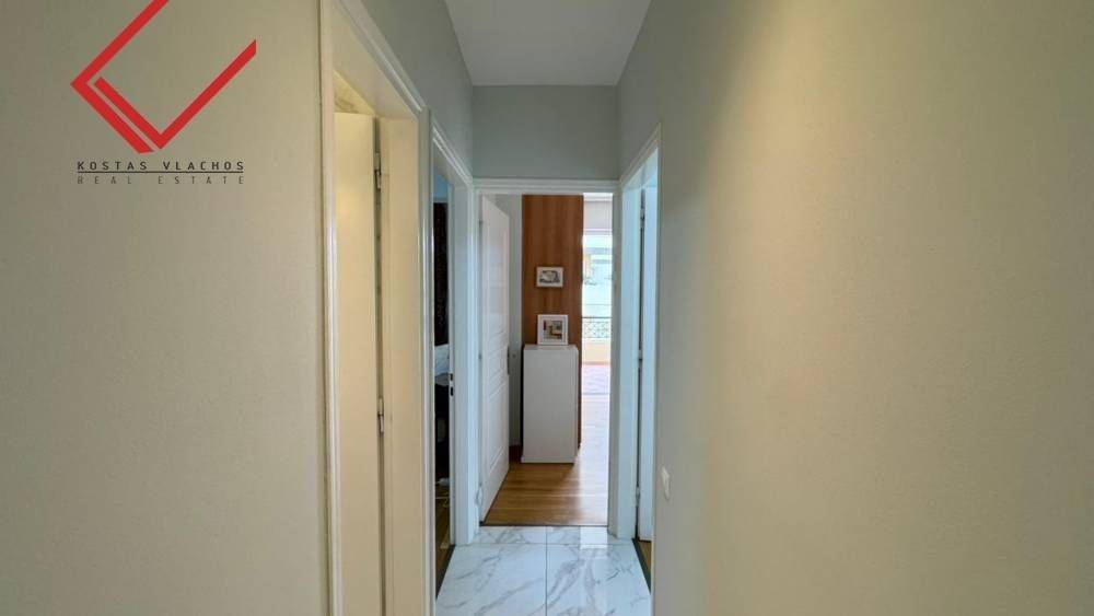 Το ακίνητο, κατασκευασμένο το 2007 και ανακαινισμένο το 2018, διαθέτει 3 υπνοδωμάτια (εκ των οποίων το ένα μάστερ με δικό του μπάνιο), 2 μπάνια,wc καθώς και ενιαίο χώρο κουζίνας, σαλονιού και τραπεζαρίας. Ξεχωρίζει για τις 3 ευρύχωρες βεράντες με ανοιχτή θέα σε βουνό και θάλασσα, την υπόγεια αποθήκη και τη θέση στάθμευσης. Στις παροχές της πολυκατοικίας περιλαμβάνονται κοινόχρηστη πισίνα, γυμναστήριο, γήπεδο μπάσκετ και κήπος. Επιπλέον, το διαμέρισμα διαθέτει ασανσέρ, αυτόνομη θέρμανση πετρελαίου, κλιματιστικά, ηλιακό θερμοσίφωνα, θωρακισμένη πόρτα, σύστημα συναγερμού, καθώς και κουφώματα αλουμινίου με σίτες και ρολά ασφαλείας.