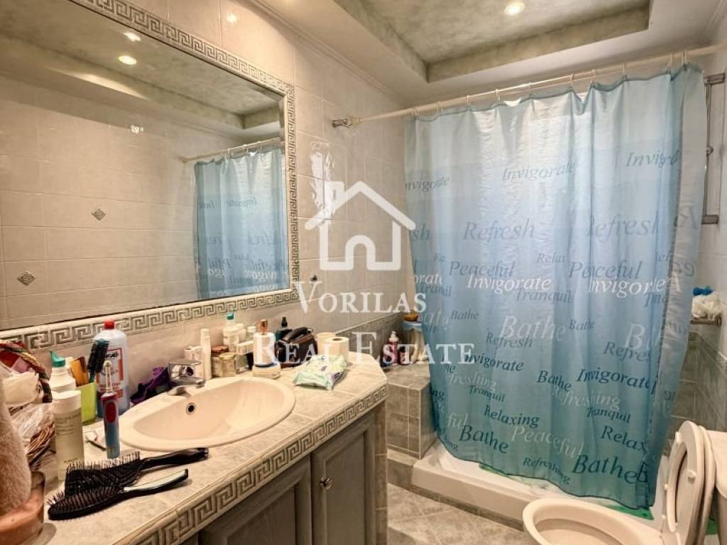 Ο πρώτος όροφος οροφοδιαμέρισμα, 190 τ.μ., κατασκευής 2000, διαθέτει δύο ευρύχωρα σαλόνια με τζάκι, άνετη κουζίνα, δύο μπάνια και τρία υπνοδωμάτια, εκ των οποίων το ένα είναι master, προσφέροντας υψηλό επίπεδο διαβίωσης.