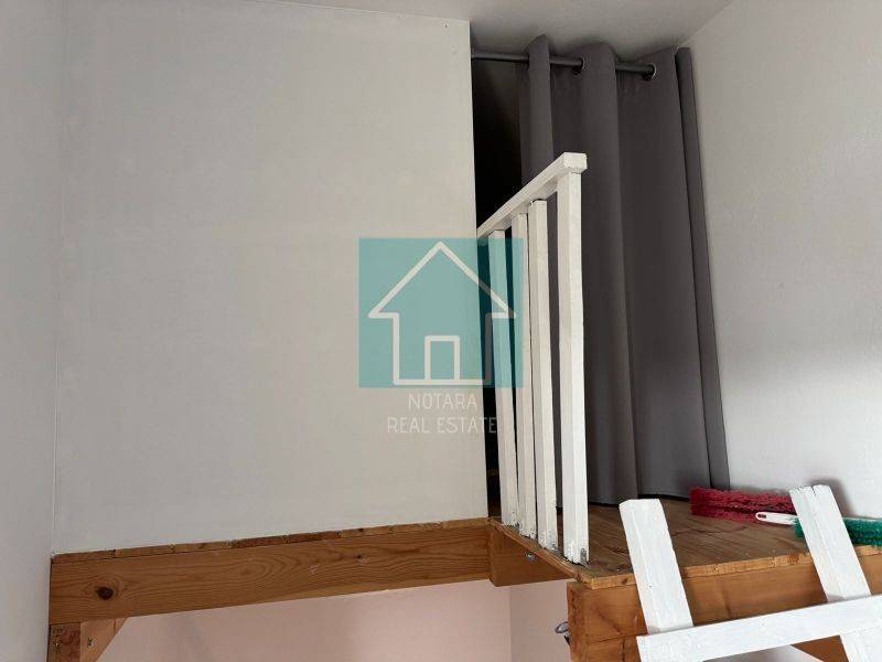 Ο πρώτος όροφος φιλοξενεί κύρια κατοικία 85 τ.μ., η οποία αποτελείται από δύο υπνοδωμάτια με εντοιχισμένες ντουλάπες, ένα μπάνιο και ενιαίο χώρο σαλονιού και κουζίνας, προσφέροντας άνεση και λειτουργικότητα.